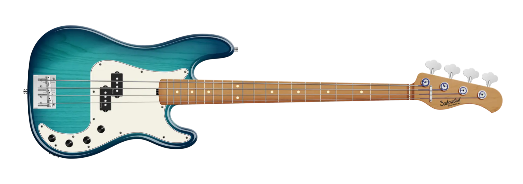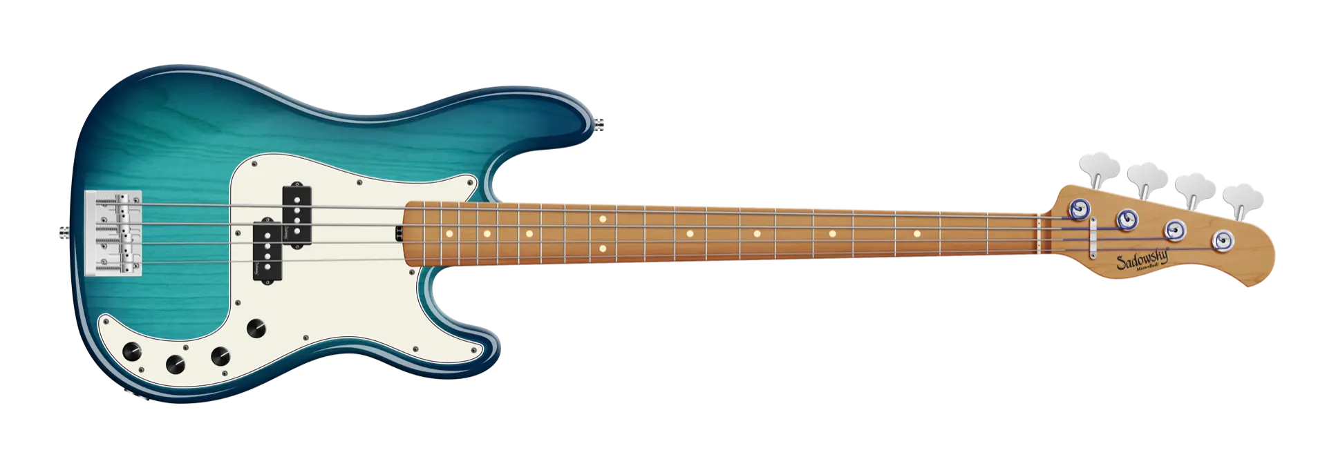Der Sadowsky MasterBuilt 20-Fret Ultra Vintage P Bass ist ein Vintage P-Style Bass mit dem berühmten modernen Sadowsky Sound! Diese 4-saitige Version hat einen P-Style-Korpus aus amerikanischer Sumpfesche (chambered), der in einem Bora Blue Burst Transparent High Polish-Finish lackiert ist, und einen Hals aus geröstetem amerikanischem Ahorn mit einem Griffbrett aus geröstetem amerikanischem Ahorn. Zu den besonderen Merkmalen dieses Basses gehören ein passiver Sadowsky P-Style Tonabnehmer, eine aktive Elektronik mit True Bypass, Höhen- und Bassanhebung und Vintage Tone Control, die den speziellen Sadowsky-Ton erzeugen: Niemals harsch oder schrill klingend, mit starken, kraftvollen (aber niemals matschigen!) Bässen, Mitten, die präsent, aber nicht zu aggressiv sind, und einem süßen und luftigen Höhenbereich. Außerdem verfügt sie über offene Sadowsky-Mechaniken und eine Sadowsky Quick String Release Bridge. Dieser Bass wird ausschließlich in unserer Werkstatt in Deutschland hergestellt und wiegt nie mehr als 3,8 kg. Eine gute Wahl für Bassisten, die einen schönen Vintage-P-Bass suchen, der gleichzeitig leicht ist und einen modernen Bass-Sound hat.