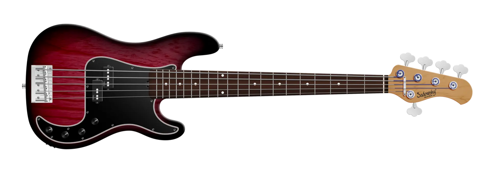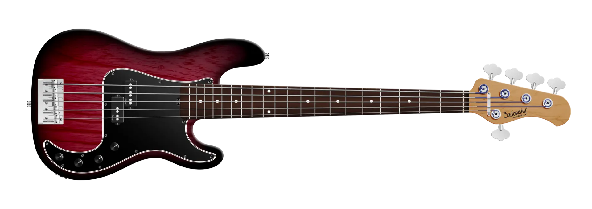 Der Sadowsky MasterBuilt 20-Fret Ultra Vintage P Bass ist ein Vintage P-Style Bass mit dem berühmten modernen Sadowsky Sound! Diese 5-saitige Version hat einen P-Style-Korpus aus amerikanischer Sumpfesche (chambered), der in einem Burgundy Blackburst Transparent Satin-Finish lackiert ist, und einen Hals aus geröstetem amerikanischem Ahorn mit einem Griffbrett aus geröstetem amerikanischem Ahorn. Zu den besonderen Merkmalen dieses Basses gehören ein passiver Sadowsky P-Style Tonabnehmer, eine aktive Elektronik mit True Bypass, Höhen- und Bassanhebung und Vintage Tone Control, die den speziellen Sadowsky-Ton erzeugen: Niemals harsch oder schrill klingend, mit starken, kraftvollen (aber niemals matschigen!) Bässen, Mitten, die präsent, aber nicht zu aggressiv sind, und einem süßen und luftigen Höhenbereich. Außerdem verfügt sie über offene Sadowsky-Mechaniken und eine Sadowsky Quick String Release Bridge. Dieser Bass wird ausschließlich in unserer Werkstatt in Deutschland hergestellt und wiegt nie mehr als 3,8 kg. Eine gute Wahl für Bassisten, die einen schönen Vintage-P-Bass suchen, der gleichzeitig leicht ist und einen modernen Bass-Sound hat.