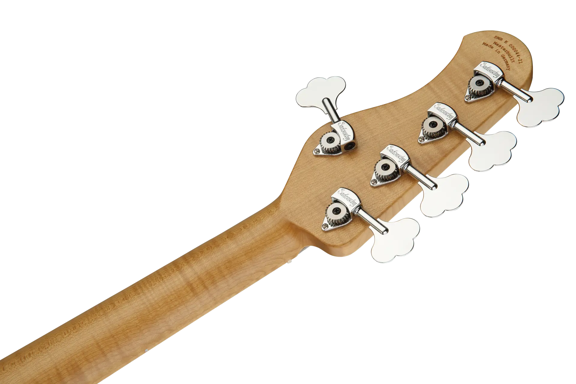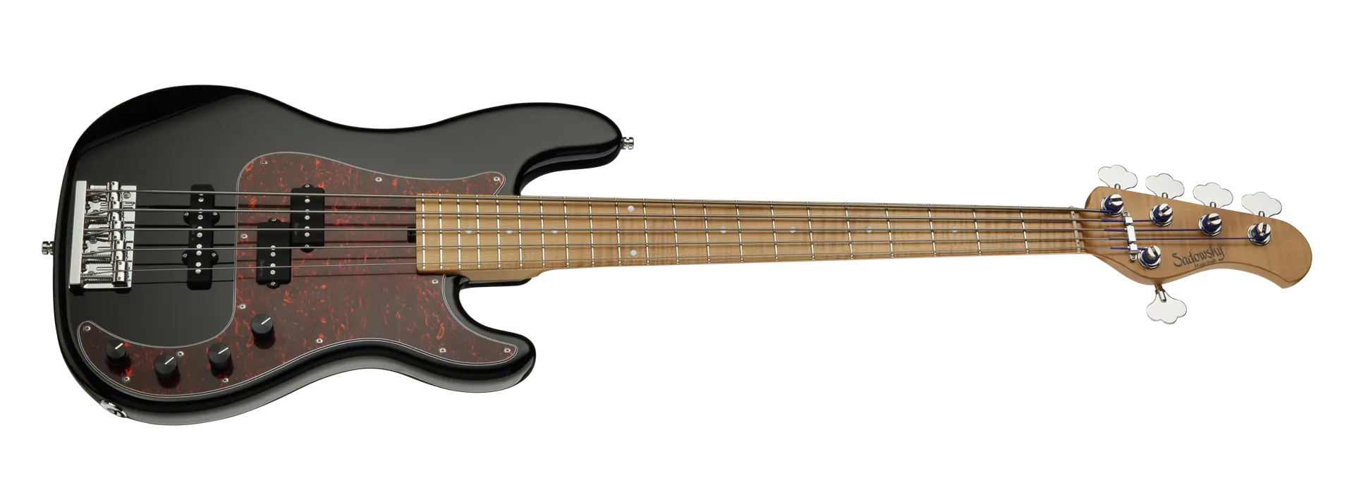 Roger Sadowskys Ziel war es immer, ein bereits sehr erfolgreiches Bassdesign durch eine Reihe von Detailverbesserungen weiter zu verbessern. Es ist ihm gelungen, den bekannten P/J-Bass-Sound auf ein neues Niveau zu heben und einen Ton zu schaffen, der nie hart oder schrill klingt, mit starken, kraftvollen (aber nie matschigen) Bässen, mit präsenten (aber nicht zu aggressiven) Mitten und einem süßen und luftigen Höhenbereich. Dieser Sound findet sich in der Sadowsky MasterBuilt 21-Fret Hybrid P/J Linie von Bässen wieder. Der hier als 5-saitiger Bass mit Solid Black High Polish-Lackierung gezeigte Bass besitzt einen P-Style-Korpus aus amerikanischer Sumpfesche (chambered). Der Hals ist aus geröstetem amerikanischem Ahorn und hat ein Griffbrett aus geröstetem amerikanischem Ahorn. Zu den besonderen Merkmalen dieses Basses gehören Sadowsky P- und J-Tonabnehmer, aktive Elektronik mit True Bypass, Vintage Tone Control, Treble und Bass Boost. Dieser Bass ist mit leichten, offenen Sadowsky-Mechaniken und der Sadowsky Quick String Release Bridge ausgestattet. Sadowsky MasterBuilt 21-Fret Hybrid P/J Bässe werden ausschließlich in Deutschland hergestellt. Das Gewicht dieses Basses beträgt nie mehr als 3,8 kg. Eine gute Wahl für Spieler, die einen sehr leichten Bass mit einem modernen Bass-Sound wünschen.