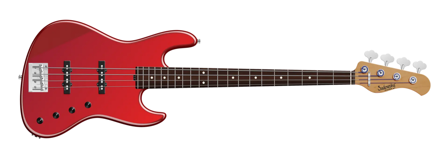 Der Sadowsky MasterBuilt 21-Fret Standard J/J Bass sieht nicht nur gut aus, er spielt und klingt auch fantastisch! Ausgestattet mit der berühmten Sadowsky-Elektronik, erhalten Sie den speziellen Sadowsky-Ton: Niemals harsch oder schrill klingend, mit starken, kraftvollen (aber niemals matschigen!) Bässen, Mitten, die präsent, aber nicht zu aggressiv sind, und einem süßen und luftigen Höhenbereich. Diese 4-saitige Version hat einen schlanken, unterdimensionierten J-Style-Korpus aus amerikanischer Roterle (chambered), der in einem Solid Candy Apple Red Metallic High Polish Finish lackiert ist. Der Hals ist aus geröstetem amerikanischem Ahorn gefertigt und hat ein Griffbrett aus Morado (Pau Ferro). Zu den besonderen Merkmalen dieses Basses gehören zwei brummfreie Sadowsky J-Style Pickups, eine aktive Elektronik mit True Bypass, Treble und Bass Boost und Vintage Tone Control. Außerdem verfügt er über leichte, offene Sadowsky-Mechaniken und eine Sadowsky Quick String Release Bridge. Dieser Bass wird ausschließlich in unserer Werkstatt in Deutschland hergestellt und wiegt nie mehr als 3,8 kg. Eine gute Wahl für Bassisten, die einen schönen und leichten Bass suchen, der einen modernen Bass-Sound bietet.