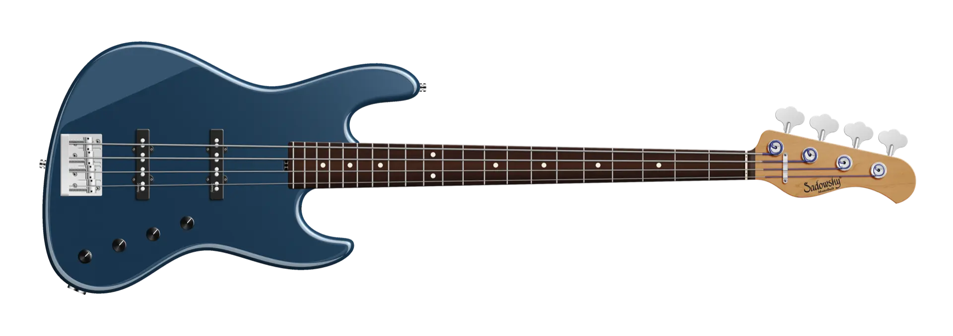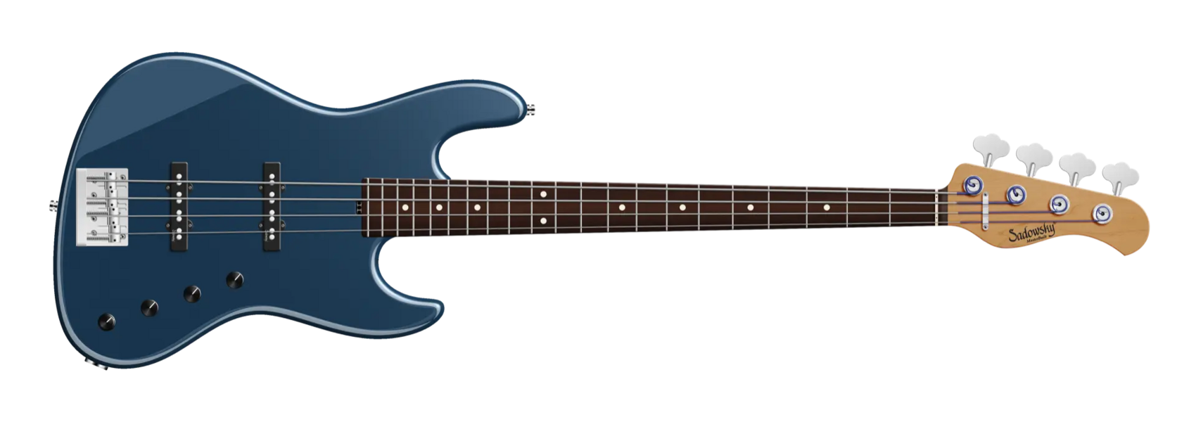 Der Sadowsky MasterBuilt 21-Fret Standard J/J Bass sieht nicht nur gut aus, er spielt und klingt auch fantastisch! Ausgestattet mit der berühmten Sadowsky-Elektronik, erhalten Sie den speziellen Sadowsky-Ton: Niemals harsch oder schrill klingend, mit starken, kraftvollen (aber niemals matschigen!) Bässen, Mitten, die präsent, aber nicht zu aggressiv sind, und einem süßen und luftigen Höhenbereich. Diese 4-saitige Version hat einen schlanken, unterdimensionierten J-Style-Korpus aus amerikanischer Roterle (chambered), der in einem Solid Dark Lake Placid Blue Metallic High Polish Finish lackiert ist. Der Hals ist aus geröstetem amerikanischem Ahorn gefertigt und hat ein Griffbrett aus Morado (Pau Ferro). Zu den besonderen Merkmalen dieses Basses gehören zwei brummfreie Sadowsky J-Style Pickups, eine aktive Elektronik mit True Bypass, Treble und Bass Boost und Vintage Tone Control. Außerdem verfügt er über leichte, offene Sadowsky-Mechaniken und eine Sadowsky Quick String Release Bridge. Dieser Bass wird ausschließlich in unserer Werkstatt in Deutschland hergestellt und wiegt nie mehr als 3,8 kg. Eine gute Wahl für Bassisten, die einen schönen und leichten Bass suchen, der einen modernen Bass-Sound bietet.