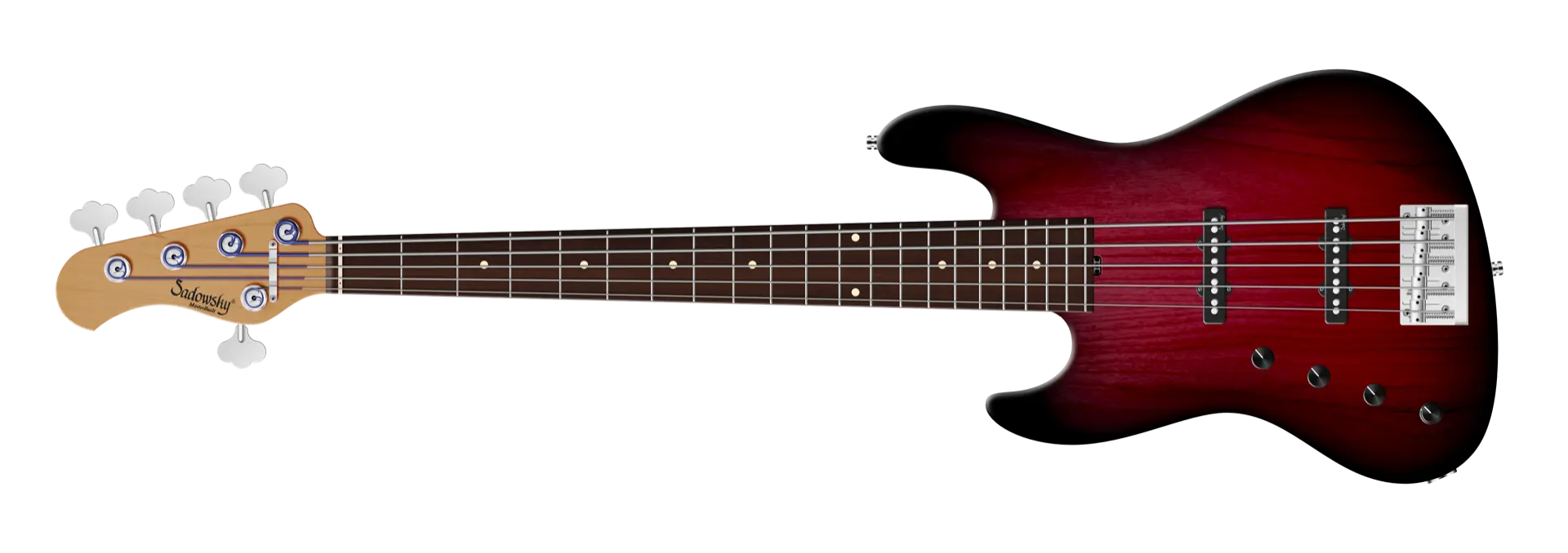 Der Sadowsky MasterBuilt 21-Fret Standard J/J Bass sieht nicht nur gut aus, er spielt und klingt auch fantastisch! Ausgestattet mit der berühmten Sadowsky-Elektronik, erhalten Sie den speziellen Sadowsky-Ton: Niemals harsch oder schrill klingend, mit starken, kraftvollen (aber niemals matschigen!) Bässen, Mitten, die präsent, aber nicht zu aggressiv sind, und einem süßen und luftigen Höhenbereich. Diese 5-saitige Linkshändiger-Version hat einen schlanken, unterdimensionierten J-Style-Korpus aus amerikanischer Roterle (chambered), der in einem Burgundy Blackburst Transparent Satin Finish lackiert ist. Der Hals ist aus geröstetem amerikanischem Ahorn gefertigt und hat ein Griffbrett aus Morado (Pau Ferro). Zu den besonderen Merkmalen dieses Basses gehören zwei brummfreie Sadowsky J-Style Pickups, eine aktive Elektronik mit True Bypass, Treble und Bass Boost und Vintage Tone Control. Außerdem verfügt er über leichte, offene Sadowsky-Mechaniken und eine Sadowsky Quick String Release Bridge. Dieser Bass wird ausschließlich in unserer Werkstatt in Deutschland hergestellt und wiegt nie mehr als 3,8 kg. Eine gute Wahl für Bassisten, die einen schönen und leichten Bass suchen, der einen modernen Bass-Sound bietet.