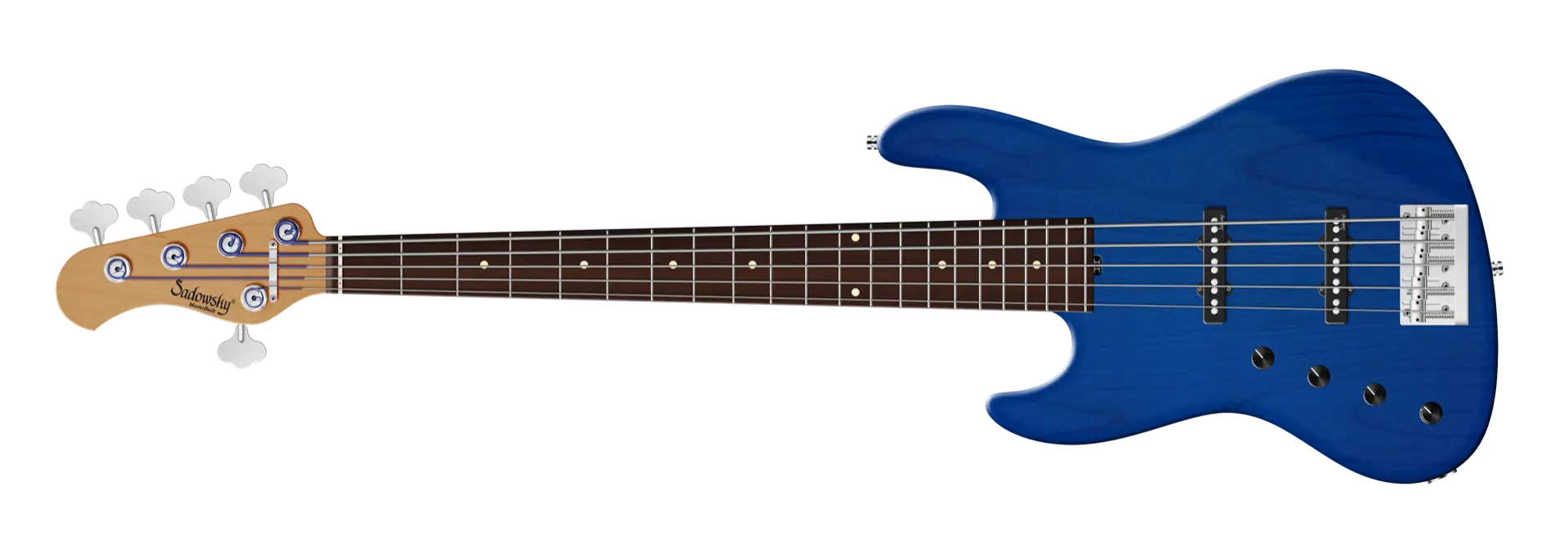 Der Sadowsky MasterBuilt 21-Fret Standard J/J Bass sieht nicht nur gut aus, er spielt und klingt auch fantastisch! Ausgestattet mit der berühmten Sadowsky-Elektronik, erhalten Sie den speziellen Sadowsky-Ton: Niemals harsch oder schrill klingend, mit starken, kraftvollen (aber niemals matschigen!) Bässen, Mitten, die präsent, aber nicht zu aggressiv sind, und einem süßen und luftigen Höhenbereich. Diese 5-saitige Linkshändiger-Version hat einen schlanken, unterdimensionierten J-Style-Korpus aus amerikanischer Roterle (chambered), der in einem Ocean Blue Transparent Satin Finish lackiert ist. Der Hals ist aus geröstetem amerikanischem Ahorn gefertigt und hat ein Griffbrett aus Morado (Pau Ferro). Zu den besonderen Merkmalen dieses Basses gehören zwei brummfreie Sadowsky J-Style Pickups, eine aktive Elektronik mit True Bypass, Treble und Bass Boost und Vintage Tone Control. Außerdem verfügt er über leichte, offene Sadowsky-Mechaniken und eine Sadowsky Quick String Release Bridge. Dieser Bass wird ausschließlich in unserer Werkstatt in Deutschland hergestellt und wiegt nie mehr als 3,8 kg. Eine gute Wahl für Bassisten, die einen schönen und leichten Bass suchen, der einen modernen Bass-Sound bietet.