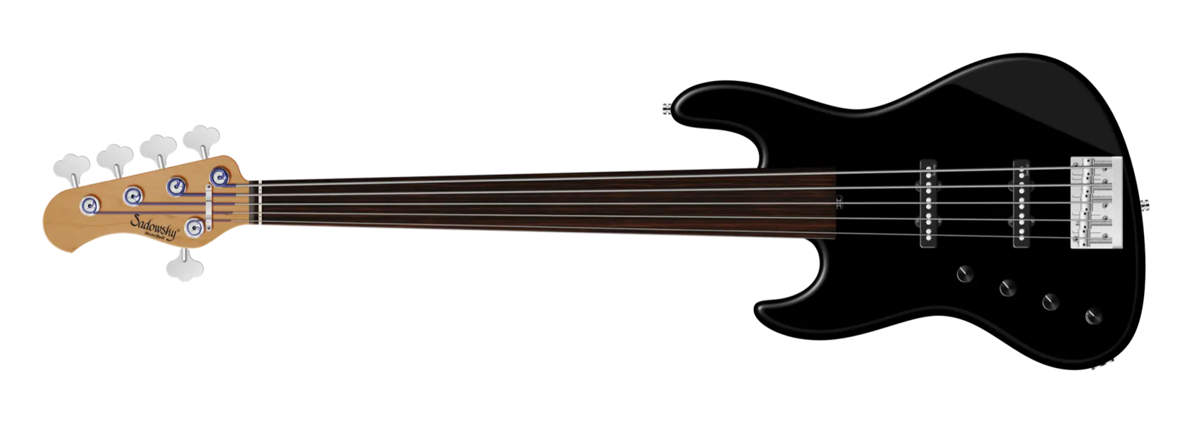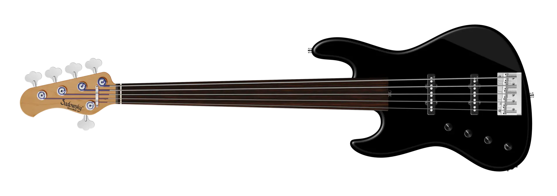Der Sadowsky MasterBuilt 21-Fret Standard J/J Bass sieht nicht nur gut aus, er spielt und klingt auch fantastisch! Ausgestattet mit der berühmten Sadowsky-Elektronik, erhalten Sie den speziellen Sadowsky-Ton: Niemals harsch oder schrill klingend, mit starken, kraftvollen (aber niemals matschigen!) Bässen, Mitten, die präsent, aber nicht zu aggressiv sind, und einem süßen und luftigen Höhenbereich. Diese 5-saitige Fretless Linkshänder-Version hat einen schlanken, unterdimensionierten J-Style-Korpus aus amerikanischer Roterle (chambered), der in einem Solid Black Satin Finish lackiert ist. Der Hals ist aus geröstetem amerikanischem Ahorn gefertigt und hat ein Griffbrett aus Tigerstripe Ebony. Zu den besonderen Merkmalen dieses Basses gehören zwei brummfreie Sadowsky J-Style Pickups, eine aktive Elektronik mit True Bypass, Treble und Bass Boost und Vintage Tone Control. Außerdem verfügt er über leichte, offene Sadowsky-Mechaniken und eine Sadowsky Quick String Release Bridge. Dieser Bass wird ausschließlich in unserer Werkstatt in Deutschland hergestellt und wiegt nie mehr als 3,8 kg. Eine gute Wahl für Bassisten, die einen schönen und leichten Bass suchen, der einen modernen Bass-Sound bietet.
