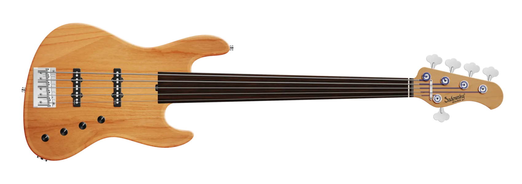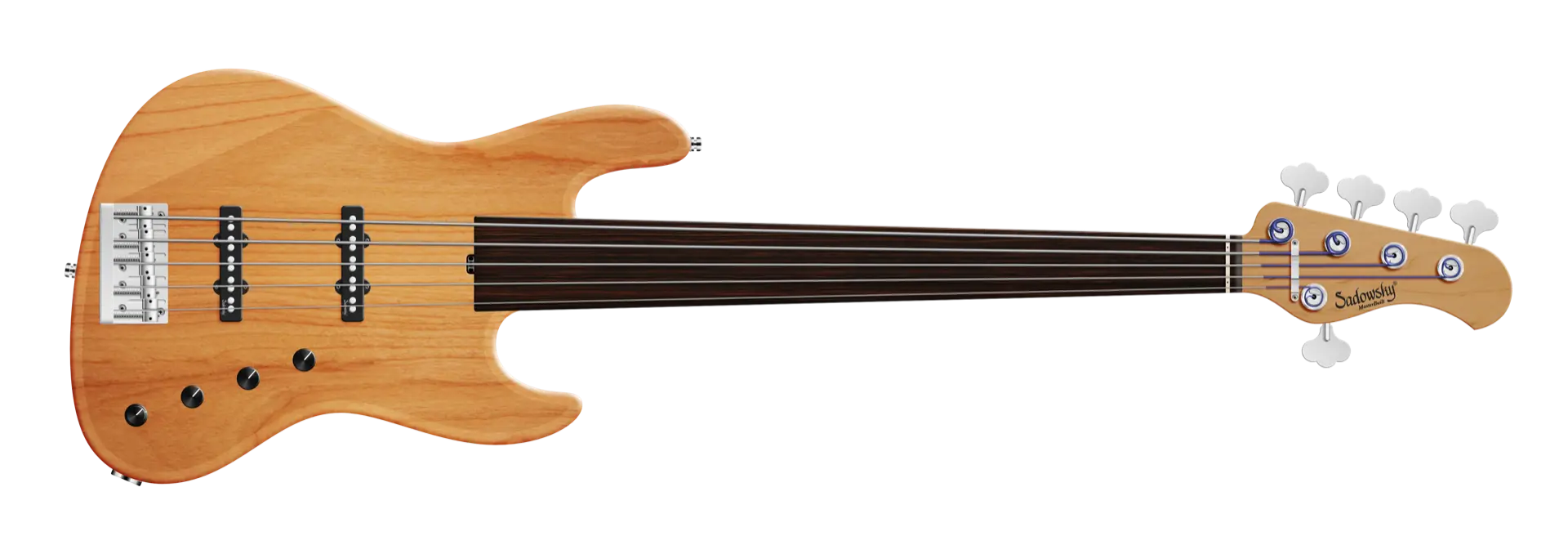 Der Sadowsky MasterBuilt 21-Fret Standard J/J Bass sieht nicht nur gut aus, er spielt und klingt auch fantastisch! Ausgestattet mit der berühmten Sadowsky-Elektronik, erhalten Sie den speziellen Sadowsky-Ton: Niemals harsch oder schrill klingend, mit starken, kraftvollen (aber niemals matschigen!) Bässen, Mitten, die präsent, aber nicht zu aggressiv sind, und einem süßen und luftigen Höhenbereich. Diese 5-saitige Fretless-Version hat einen schlanken, unterdimensionierten J-Style-Korpus aus amerikanischer Roterle (chambered), der in einem Natural Transparent Satin Finish lackiert ist. Der Hals ist aus geröstetem amerikanischem Ahorn gefertigt und hat ein Griffbrett aus Tigerstripe Ebony. Zu den besonderen Merkmalen dieses Basses gehören zwei brummfreie Sadowsky J-Style Pickups, eine aktive Elektronik mit True Bypass, Treble und Bass Boost und Vintage Tone Control. Außerdem verfügt er über leichte, offene Sadowsky-Mechaniken und eine Sadowsky Quick String Release Bridge. Dieser Bass wird ausschließlich in unserer Werkstatt in Deutschland hergestellt und wiegt nie mehr als 3,8 kg. Eine gute Wahl für Bassisten, die einen schönen und leichten Bass suchen, der einen modernen Bass-Sound bietet.