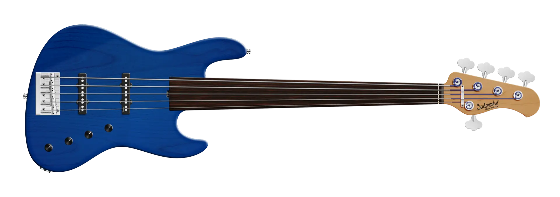 Der Sadowsky MasterBuilt 21-Fret Standard J/J Bass sieht nicht nur gut aus, er spielt und klingt auch fantastisch! Ausgestattet mit der berühmten Sadowsky-Elektronik, erhalten Sie den speziellen Sadowsky-Ton: Niemals harsch oder schrill klingend, mit starken, kraftvollen (aber niemals matschigen!) Bässen, Mitten, die präsent, aber nicht zu aggressiv sind, und einem süßen und luftigen Höhenbereich. Diese 5-saitige Fretless-Version hat einen schlanken, unterdimensionierten J-Style-Korpus aus amerikanischer Roterle (chambered), der in einem Ocean Blue Transparent Satin Finish lackiert ist. Der Hals ist aus geröstetem amerikanischem Ahorn gefertigt und hat ein Griffbrett aus Tigerstripe Ebony. Zu den besonderen Merkmalen dieses Basses gehören zwei brummfreie Sadowsky J-Style Pickups, eine aktive Elektronik mit True Bypass, Treble und Bass Boost und Vintage Tone Control. Außerdem verfügt er über leichte, offene Sadowsky-Mechaniken und eine Sadowsky Quick String Release Bridge. Dieser Bass wird ausschließlich in unserer Werkstatt in Deutschland hergestellt und wiegt nie mehr als 3,8 kg. Eine gute Wahl für Bassisten, die einen schönen und leichten Bass suchen, der einen modernen Bass-Sound bietet.