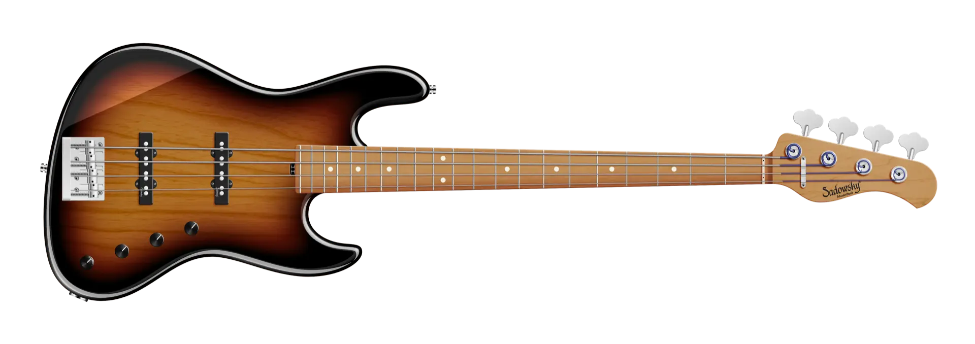 Der Sadowsky MasterBuilt 21-Fret Standard J/J Bass sieht nicht nur gut aus, er spielt und klingt auch fantastisch! Ausgestattet mit der berühmten Sadowsky-Elektronik, erhalten Sie den speziellen Sadowsky-Ton: Niemals harsch oder schrill klingend, mit starken, kraftvollen (aber niemals matschigen!) Bässen, Mitten, die präsent, aber nicht zu aggressiv sind, und einem süßen und luftigen Höhenbereich. Diese 4-saitige Version hat einen schlanken, unterdimensionierten J-Style-Korpus aus amerikanischer Sumpfesche (chambered), der in einem '59 Burst Transparent High Polish lackiert ist. Der Hals ist aus geröstetem amerikanischem Ahorn gefertigt und hat ein Griffbrett aus geröstetem amerikanischem Ahorn. Zu den besonderen Merkmalen dieses Basses gehören zwei brummfreie Sadowsky J-Style Pickups, eine aktive Elektronik mit True Bypass, Treble und Bass Boost und Vintage Tone Control. Außerdem verfügt er über leichte, offene Sadowsky-Mechaniken und eine Sadowsky Quick String Release Bridge. Dieser Bass wird ausschließlich in unserer Werkstatt in Deutschland hergestellt und wiegt nie mehr als 3,8 kg. Eine gute Wahl für Bassisten, die einen schönen und leichten Bass suchen, der einen modernen Bass-Sound bietet.