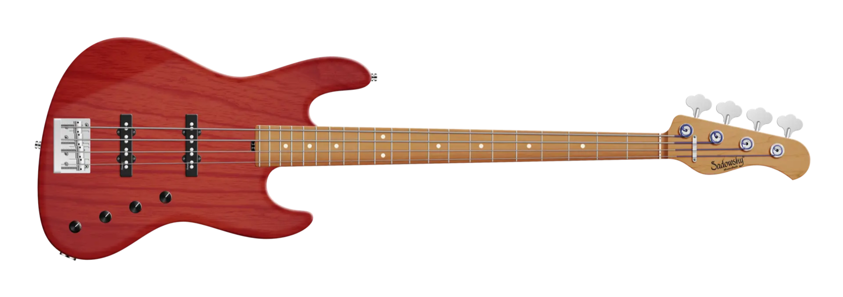 Der Sadowsky MasterBuilt 21-Fret Standard J/J Bass sieht nicht nur gut aus, er spielt und klingt auch fantastisch! Ausgestattet mit der berühmten Sadowsky-Elektronik, erhalten Sie den speziellen Sadowsky-Ton: Niemals harsch oder schrill klingend, mit starken, kraftvollen (aber niemals matschigen!) Bässen, Mitten, die präsent, aber nicht zu aggressiv sind, und einem süßen und luftigen Höhenbereich. Diese 4-saitige Version hat einen schlanken, unterdimensionierten J-Style-Korpus aus amerikanischer Sumpfesche (chambered), der in einem Burgundy Red Transparent Satin Finish lackiert ist. Der Hals ist aus geröstetem amerikanischem Ahorn gefertigt und hat ein Griffbrett aus geröstetem amerikanischem Ahorn. Zu den besonderen Merkmalen dieses Basses gehören zwei brummfreie Sadowsky J-Style Pickups, eine aktive Elektronik mit True Bypass, Treble und Bass Boost und Vintage Tone Control. Außerdem verfügt er über leichte, offene Sadowsky-Mechaniken und eine Sadowsky Quick String Release Bridge. Dieser Bass wird ausschließlich in unserer Werkstatt in Deutschland hergestellt und wiegt nie mehr als 3,8 kg. Eine gute Wahl für Bassisten, die einen schönen und leichten Bass suchen, der einen modernen Bass-Sound bietet.