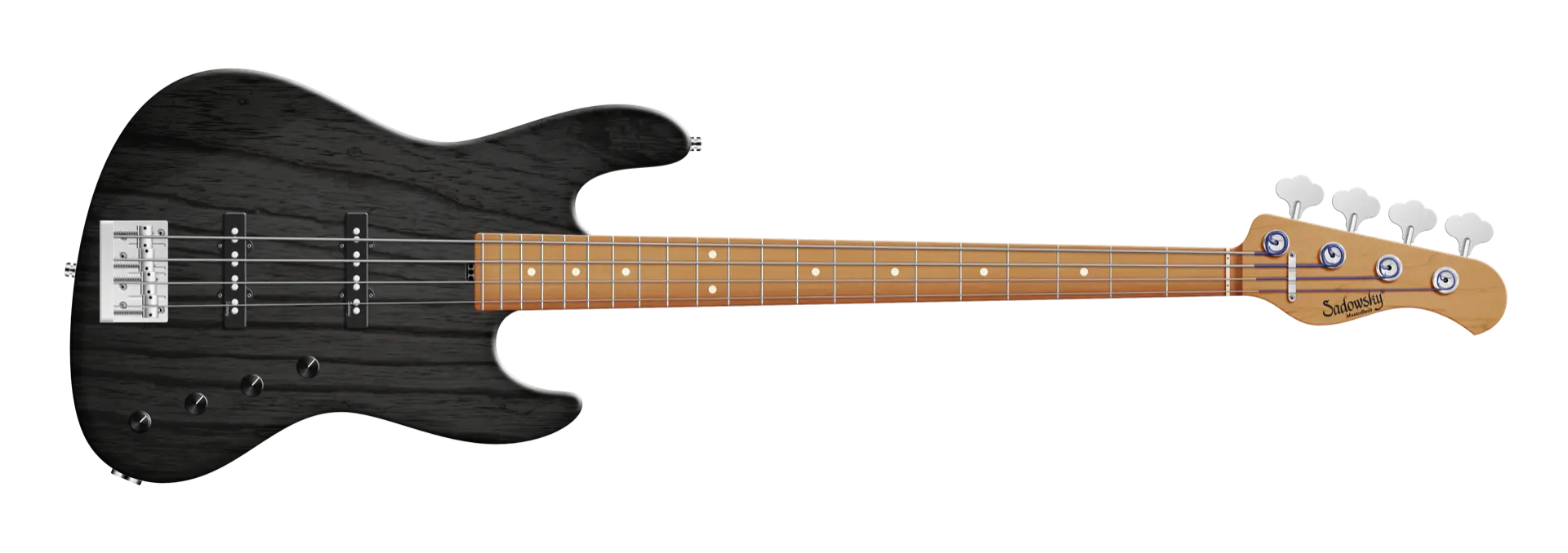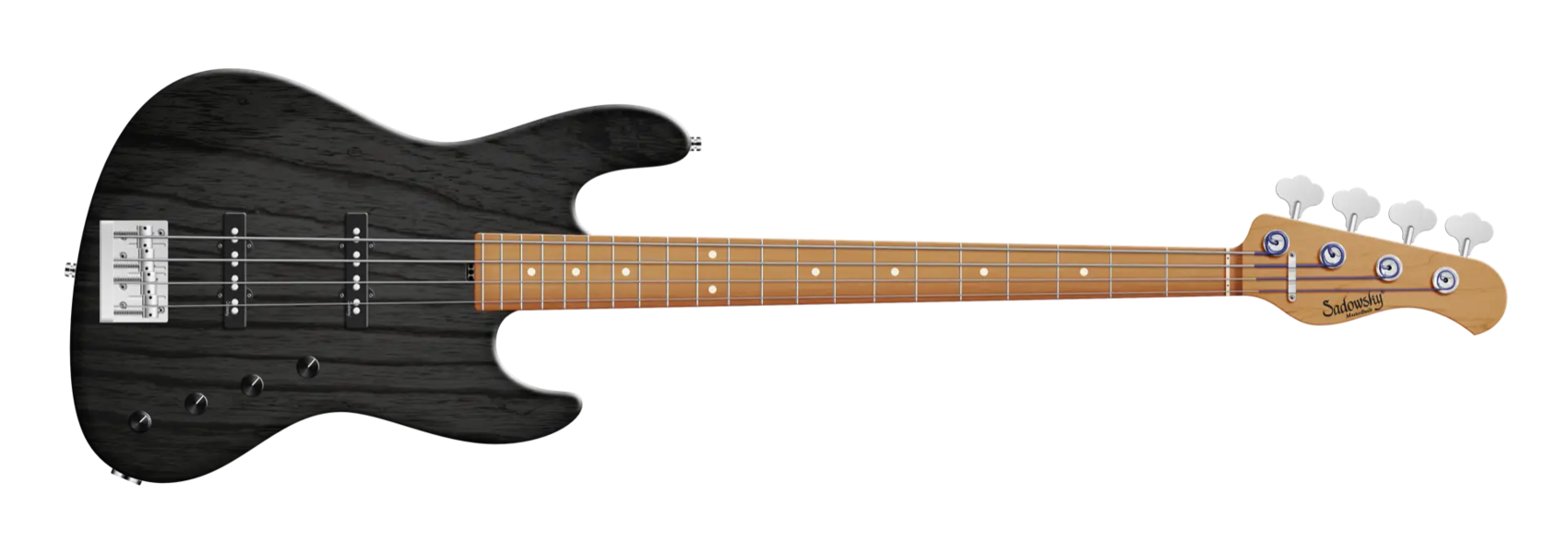 Der Sadowsky MasterBuilt 21-Fret Standard J/J Bass sieht nicht nur gut aus, er spielt und klingt auch fantastisch! Ausgestattet mit der berühmten Sadowsky-Elektronik, erhalten Sie den speziellen Sadowsky-Ton: Niemals harsch oder schrill klingend, mit starken, kraftvollen (aber niemals matschigen!) Bässen, Mitten, die präsent, aber nicht zu aggressiv sind, und einem süßen und luftigen Höhenbereich. Diese 4-saitige Version hat einen schlanken, unterdimensionierten J-Style-Korpus aus amerikanischer Sumpfesche (chambered), der in einem Nirvana Black Transparent Satin lackiert ist. Der Hals ist aus geröstetem amerikanischem Ahorn gefertigt und hat ein Griffbrett aus geröstetem amerikanischem Ahorn. Zu den besonderen Merkmalen dieses Basses gehören zwei brummfreie Sadowsky J-Style Pickups, eine aktive Elektronik mit True Bypass, Treble und Bass Boost und Vintage Tone Control. Außerdem verfügt er über leichte, offene Sadowsky-Mechaniken und eine Sadowsky Quick String Release Bridge. Dieser Bass wird ausschließlich in unserer Werkstatt in Deutschland hergestellt und wiegt nie mehr als 3,8 kg. Eine gute Wahl für Bassisten, die einen schönen und leichten Bass suchen, der einen modernen Bass-Sound bietet.