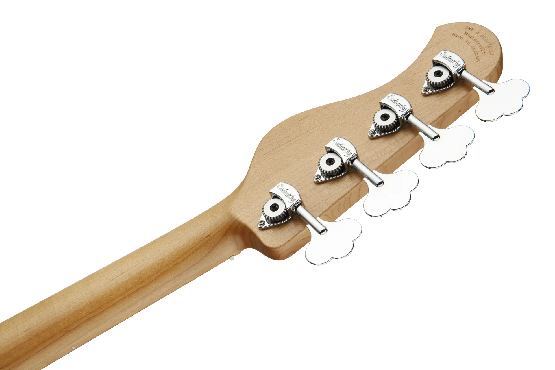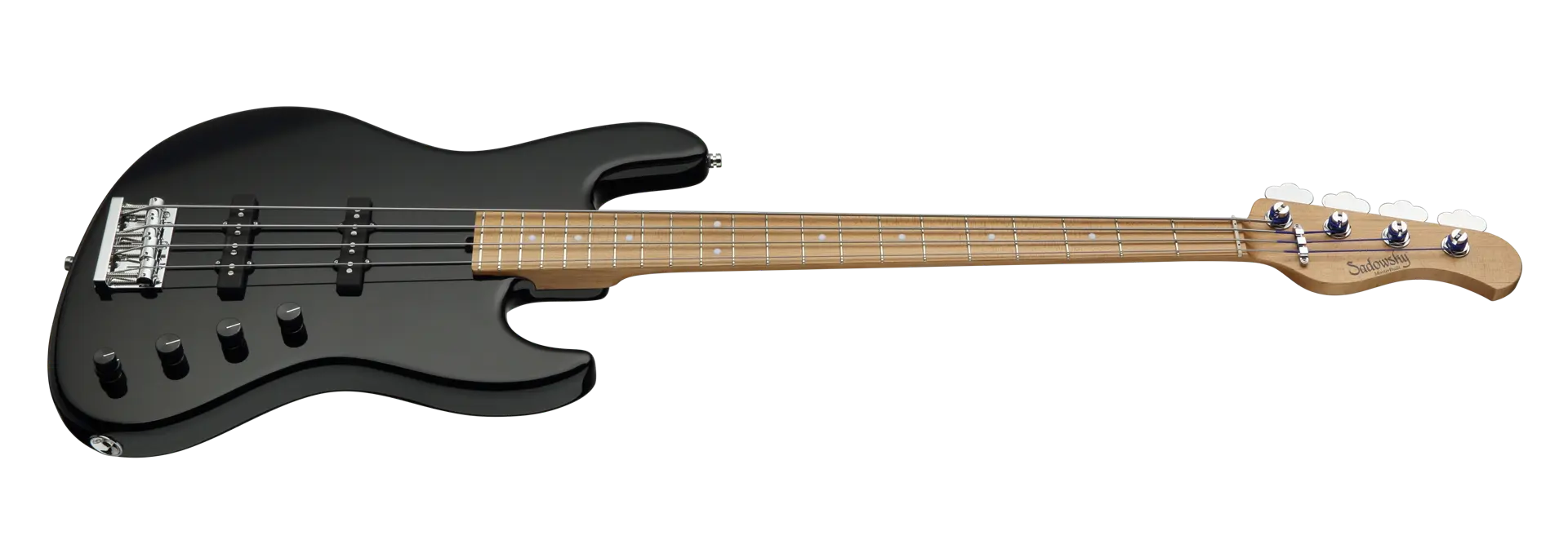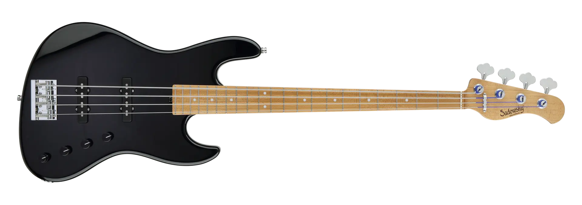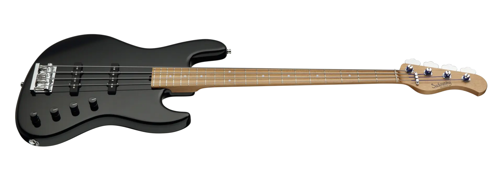 Der Sadowsky MasterBuilt 21-Fret Standard J/J Bass sieht nicht nur gut aus, er spielt und klingt auch fantastisch! Ausgestattet mit der berühmten Sadowsky-Elektronik, erhalten Sie den speziellen Sadowsky-Ton: Niemals harsch oder schrill klingend, mit starken, kraftvollen (aber niemals matschigen!) Bässen, Mitten, die präsent, aber nicht zu aggressiv sind, und einem süßen und luftigen Höhenbereich. Diese 4-saitige Version hat einen schlanken, unterdimensionierten J-Style-Korpus aus amerikanischer Sumpfesche (chambered), der in einem Solid Black High Polish lackiert ist. Der Hals ist aus geröstetem amerikanischem Ahorn gefertigt und hat ein Griffbrett aus geröstetem amerikanischem Ahorn. Zu den besonderen Merkmalen dieses Basses gehören zwei brummfreie Sadowsky J-Style Pickups, eine aktive Elektronik mit True Bypass, Treble und Bass Boost und Vintage Tone Control. Außerdem verfügt er über leichte, offene Sadowsky-Mechaniken und eine Sadowsky Quick String Release Bridge. Dieser Bass wird ausschließlich in unserer Werkstatt in Deutschland hergestellt und wiegt nie mehr als 3,8 kg. Eine gute Wahl für Bassisten, die einen schönen und leichten Bass suchen, der einen modernen Bass-Sound bietet.