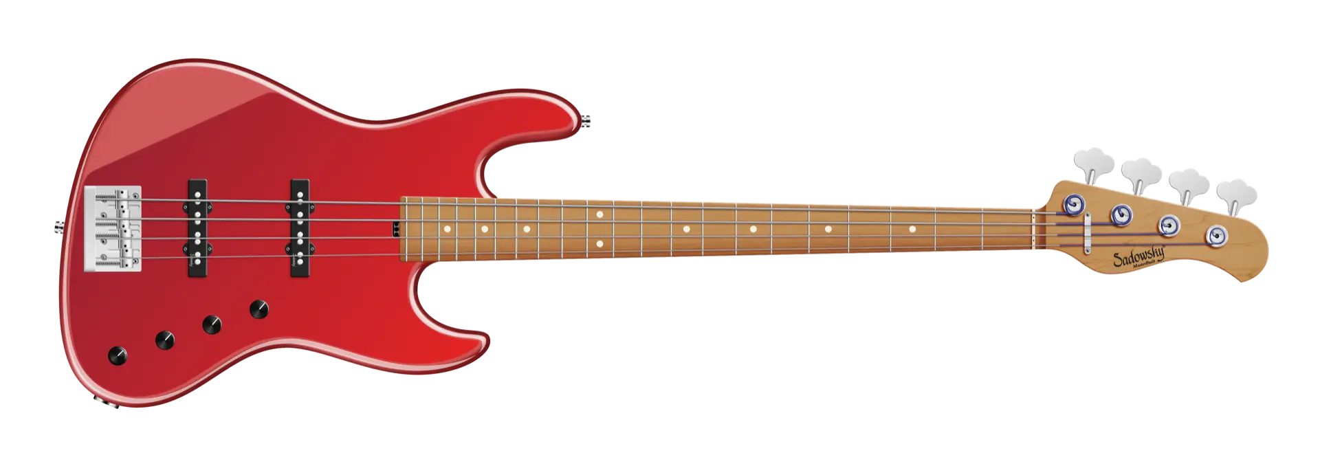 Der Sadowsky MasterBuilt 21-Fret Standard J/J Bass sieht nicht nur gut aus, er spielt und klingt auch fantastisch! Ausgestattet mit der berühmten Sadowsky-Elektronik, erhalten Sie den speziellen Sadowsky-Ton: Niemals harsch oder schrill klingend, mit starken, kraftvollen (aber niemals matschigen!) Bässen, Mitten, die präsent, aber nicht zu aggressiv sind, und einem süßen und luftigen Höhenbereich. Diese 4-saitige Version hat einen schlanken, unterdimensionierten J-Style-Korpus aus amerikanischer Sumpfesche (chambered), der in einem Solid Dakota Red High Polish lackiert ist. Der Hals ist aus geröstetem amerikanischem Ahorn gefertigt und hat ein Griffbrett aus geröstetem amerikanischem Ahorn. Zu den besonderen Merkmalen dieses Basses gehören zwei brummfreie Sadowsky J-Style Pickups, eine aktive Elektronik mit True Bypass, Treble und Bass Boost und Vintage Tone Control. Außerdem verfügt er über leichte, offene Sadowsky-Mechaniken und eine Sadowsky Quick String Release Bridge. Dieser Bass wird ausschließlich in unserer Werkstatt in Deutschland hergestellt und wiegt nie mehr als 3,8 kg. Eine gute Wahl für Bassisten, die einen schönen und leichten Bass suchen, der einen modernen Bass-Sound bietet.