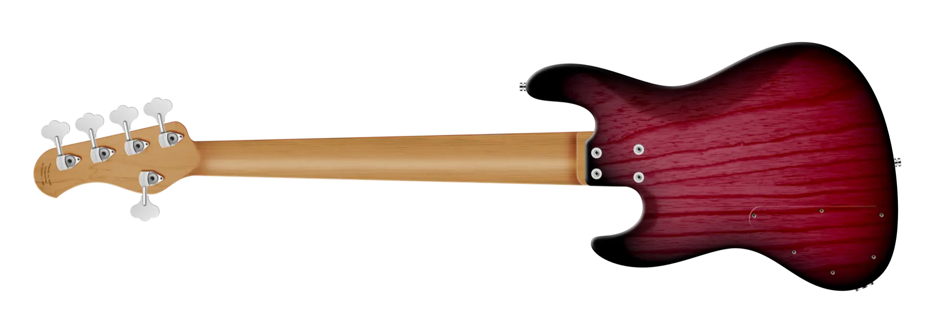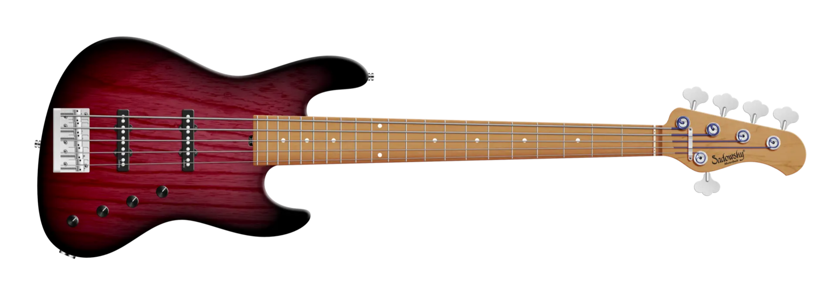 Der Sadowsky MasterBuilt 21-Fret Standard J/J Bass sieht nicht nur gut aus, er spielt und klingt auch fantastisch! Ausgestattet mit der berühmten Sadowsky-Elektronik, erhalten Sie den speziellen Sadowsky-Ton: Niemals harsch oder schrill klingend, mit starken, kraftvollen (aber niemals matschigen!) Bässen, Mitten, die präsent, aber nicht zu aggressiv sind, und einem süßen und luftigen Höhenbereich. Diese 5-saitige Version hat einen schlanken, unterdimensionierten J-Style-Korpus aus amerikanischer Sumpfesche (chambered), der in einem Burgundy Blackburst Transparent Satin lackiert ist. Der Hals ist aus geröstetem amerikanischem Ahorn gefertigt und hat ein Griffbrett aus geröstetem amerikanischem Ahorn. Zu den besonderen Merkmalen dieses Basses gehören zwei brummfreie Sadowsky J-Style Pickups, eine aktive Elektronik mit True Bypass, Treble und Bass Boost und Vintage Tone Control. Außerdem verfügt er über leichte, offene Sadowsky-Mechaniken und eine Sadowsky Quick String Release Bridge. Dieser Bass wird ausschließlich in unserer Werkstatt in Deutschland hergestellt und wiegt nie mehr als 3,8 kg. Eine gute Wahl für Bassisten, die einen schönen und leichten Bass suchen, der einen modernen Bass-Sound bietet.