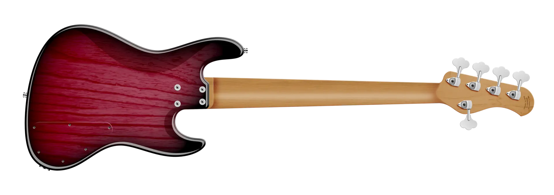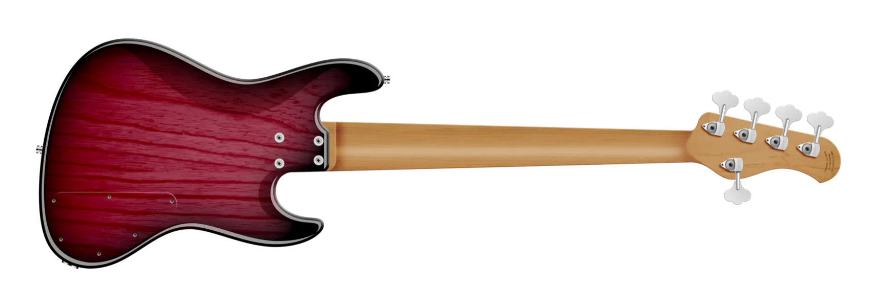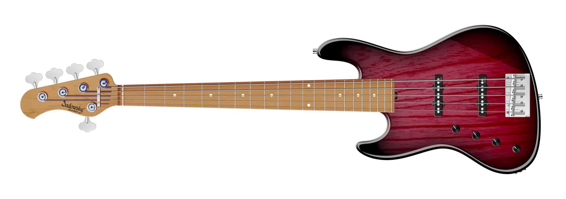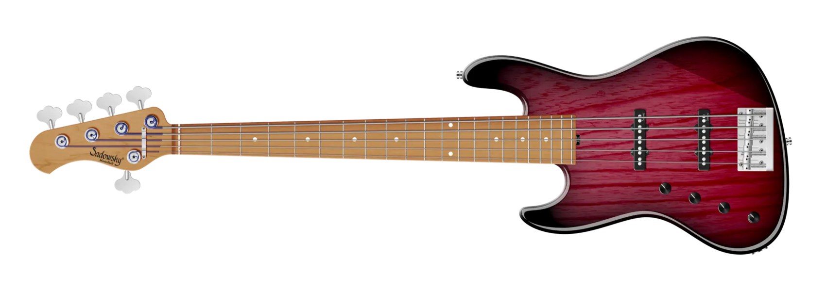 Der Sadowsky MasterBuilt 21-Fret Standard J/J Bass sieht nicht nur gut aus, er spielt und klingt auch fantastisch! Ausgestattet mit der berühmten Sadowsky-Elektronik, erhalten Sie den speziellen Sadowsky-Ton: Niemals harsch oder schrill klingend, mit starken, kraftvollen (aber niemals matschigen!) Bässen, Mitten, die präsent, aber nicht zu aggressiv sind, und einem süßen und luftigen Höhenbereich. Diese 5-saitige Linkshändiger-Version hat einen schlanken, unterdimensionierten J-Style-Korpus aus amerikanischer Sumpfesche (chambered), der in einem Burgundy Blackburst Transparent High Polish lackiert ist. Der Hals ist aus geröstetem amerikanischem Ahorn gefertigt und hat ein Griffbrett aus geröstetem amerikanischem Ahorn. Zu den besonderen Merkmalen dieses Basses gehören zwei brummfreie Sadowsky J-Style Pickups, eine aktive Elektronik mit True Bypass, Treble und Bass Boost und Vintage Tone Control. Außerdem verfügt er über leichte, offene Sadowsky-Mechaniken und eine Sadowsky Quick String Release Bridge. Dieser Bass wird ausschließlich in unserer Werkstatt in Deutschland hergestellt und wiegt nie mehr als 3,8 kg. Eine gute Wahl für Bassisten, die einen schönen und leichten Bass suchen, der einen modernen Bass-Sound bietet.