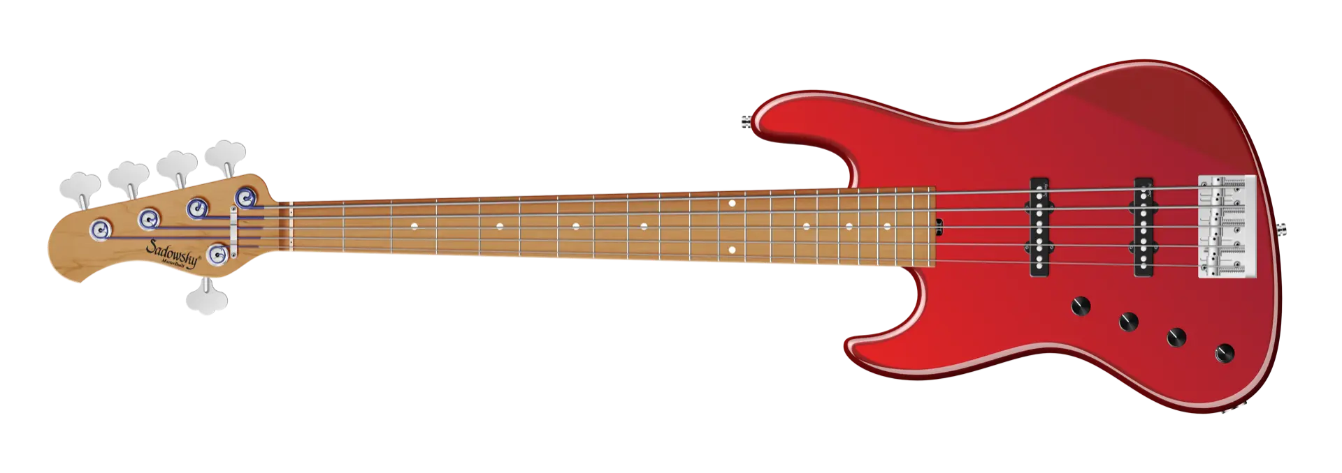 Der Sadowsky MasterBuilt 21-Fret Standard J/J Bass sieht nicht nur gut aus, er spielt und klingt auch fantastisch! Ausgestattet mit der berühmten Sadowsky-Elektronik, erhalten Sie den speziellen Sadowsky-Ton: Niemals harsch oder schrill klingend, mit starken, kraftvollen (aber niemals matschigen!) Bässen, Mitten, die präsent, aber nicht zu aggressiv sind, und einem süßen und luftigen Höhenbereich. Diese 5-saitige Linkshändiger-Version hat einen schlanken, unterdimensionierten J-Style-Korpus aus amerikanischer Sumpfesche (chambered), der in einem Solid Candy Apple Red Metallic High Polish lackiert ist. Der Hals ist aus geröstetem amerikanischem Ahorn gefertigt und hat ein Griffbrett aus geröstetem amerikanischem Ahorn. Zu den besonderen Merkmalen dieses Basses gehören zwei brummfreie Sadowsky J-Style Pickups, eine aktive Elektronik mit True Bypass, Treble und Bass Boost und Vintage Tone Control. Außerdem verfügt er über leichte, offene Sadowsky-Mechaniken und eine Sadowsky Quick String Release Bridge. Dieser Bass wird ausschließlich in unserer Werkstatt in Deutschland hergestellt und wiegt nie mehr als 3,8 kg. Eine gute Wahl für Bassisten, die einen schönen und leichten Bass suchen, der einen modernen Bass-Sound bietet.