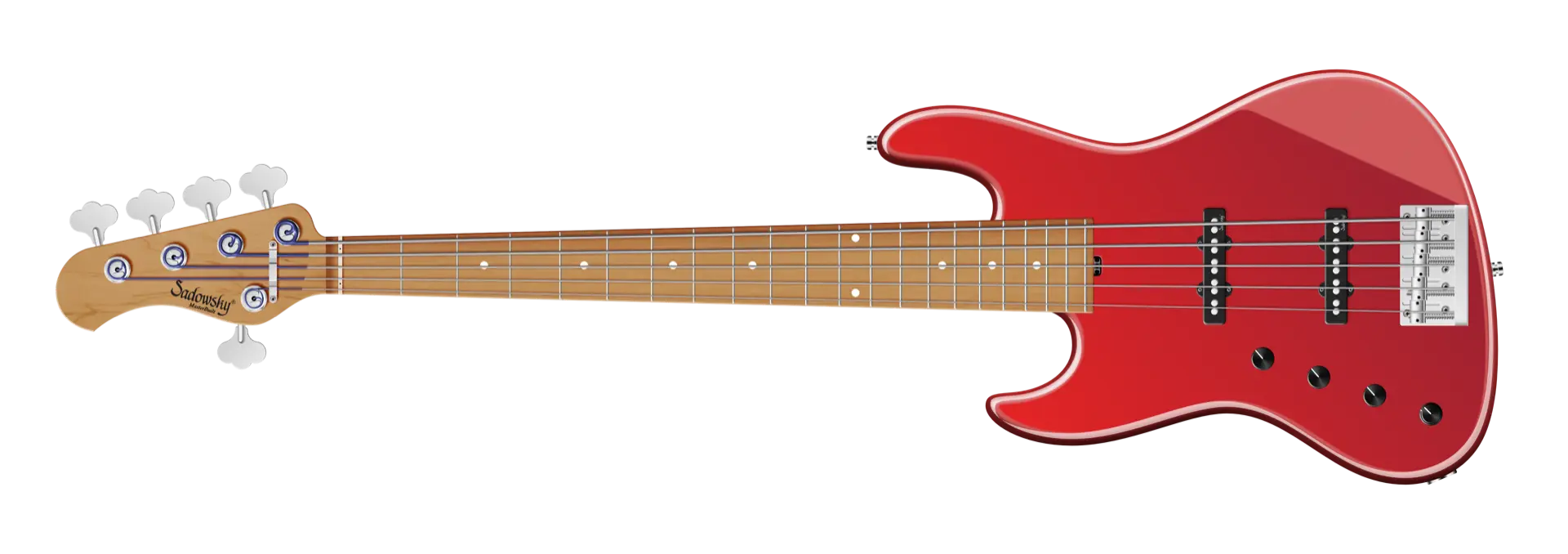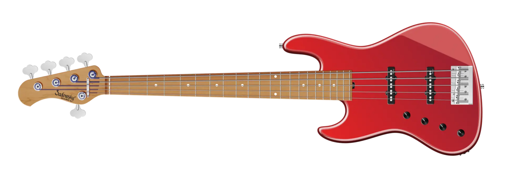 Der Sadowsky MasterBuilt 21-Fret Standard J/J Bass sieht nicht nur gut aus, er spielt und klingt auch fantastisch! Ausgestattet mit der berühmten Sadowsky-Elektronik, erhalten Sie den speziellen Sadowsky-Ton: Niemals harsch oder schrill klingend, mit starken, kraftvollen (aber niemals matschigen!) Bässen, Mitten, die präsent, aber nicht zu aggressiv sind, und einem süßen und luftigen Höhenbereich. Diese 5-saitige Linkshändiger-Version hat einen schlanken, unterdimensionierten J-Style-Korpus aus amerikanischer Sumpfesche (chambered), der in einem Solid Dakota Red High Polish lackiert ist. Der Hals ist aus geröstetem amerikanischem Ahorn gefertigt und hat ein Griffbrett aus geröstetem amerikanischem Ahorn. Zu den besonderen Merkmalen dieses Basses gehören zwei brummfreie Sadowsky J-Style Pickups, eine aktive Elektronik mit True Bypass, Treble und Bass Boost und Vintage Tone Control. Außerdem verfügt er über leichte, offene Sadowsky-Mechaniken und eine Sadowsky Quick String Release Bridge. Dieser Bass wird ausschließlich in unserer Werkstatt in Deutschland hergestellt und wiegt nie mehr als 3,8 kg. Eine gute Wahl für Bassisten, die einen schönen und leichten Bass suchen, der einen modernen Bass-Sound bietet.