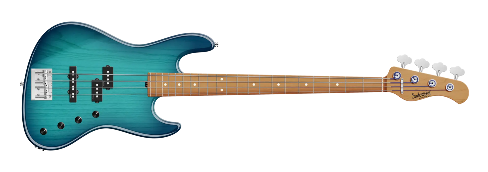 Der Sadowsky 21-Fret Verdine White Artist Line Bass ist eine Hommage an einen der besten Bassisten der Welt! Ausgestattet mit einem Korpus aus amerikanischer Sumpfesche (chambered), einem Hals aus geröstetem amerikanischem Ahorn mit einem Griffbrett aus geröstetem amerikanischem Ahorn und der berühmten Sadowsky-Elektronik erhalten Sie einen Bass mit dem besonderen Sadowsky-Ton: Niemals harsch oder schrill klingend, mit starken, kraftvollen (aber nie matschigen!) Bässen, Mitten, die präsent, aber nicht zu aggressiv sind, und einem süßen und luftigen Höhenbereich. Diese 4-saitige Version hat einen P-Style-Korpus, der in einem Bora Blue Burst Transparent High Polish Finish lackiert ist. Zu den besonderen Merkmalen gehören ein passiver Sadowsky P-Style Tonabnehmer am Hals und ein brummfreier Sadowsky J-Style Tonabnehmer am Steg. Die aktive Elektronik bietet True Bypass, Höhen- und Bassanhebung und Vintage Tone Control. Außerdem verfügt sie über offene Sadowsky-Mechaniken und eine Sadowsky Quick String Release Bridge. Ein Sadowsky MasterBuilt Verdine White Artist Line Bass wird ausschließlich in unserer Werkstatt in Deutschland hergestellt und wiegt nie mehr als 3,8 kg.