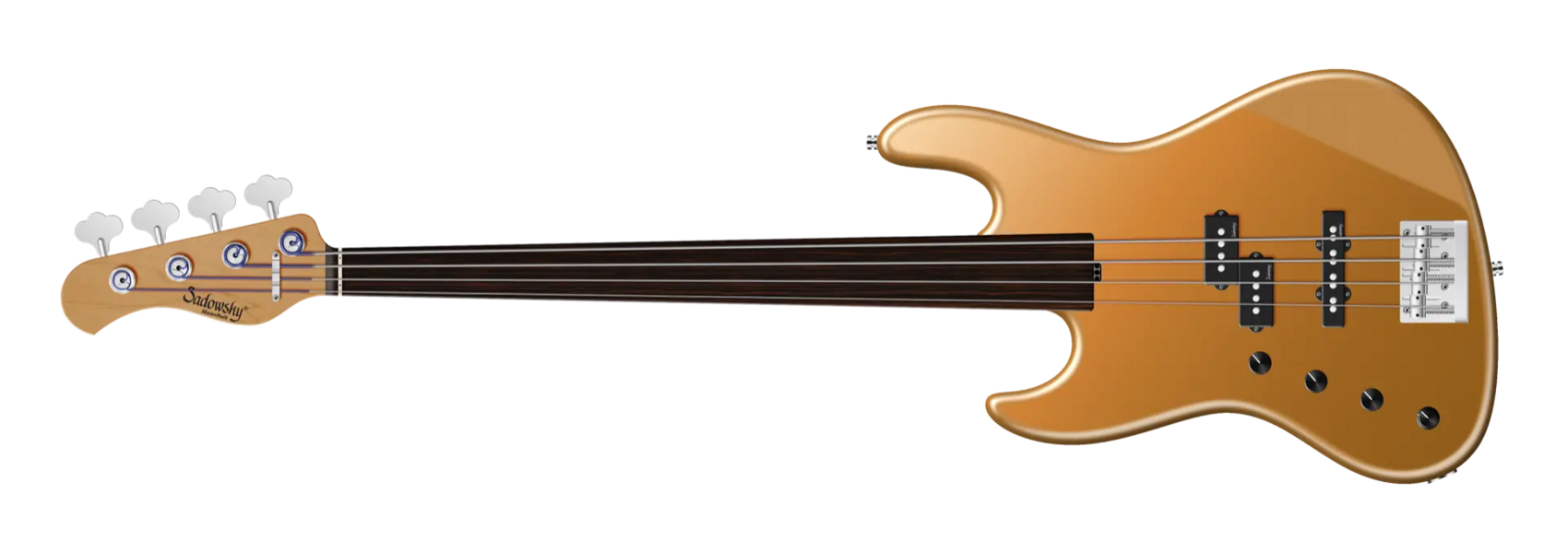 Der Sadowsky 21-Fret Verdine White Artist Line Bass ist eine Hommage an einen der besten Bassisten der Welt! Ausgestattet mit einem Korpus aus amerikanischer Sumpfesche (chambered), einem Hals aus geröstetem amerikanischem Ahorn mit einem Griffbrett aus Tigerstripe Ebony und der berühmten Sadowsky-Elektronik erhalten Sie einen Bass mit dem besonderen Sadowsky-Ton: Niemals harsch oder schrill klingend, mit starken, kraftvollen (aber nie matschigen!) Bässen, Mitten, die präsent, aber nicht zu aggressiv sind, und einem süßen und luftigen Höhenbereich. Diese 4-saitige Fretless Linkshänder-Version hat einen P-Style-Korpus, der in einem Solid Firemist Gold Metallic Satin Finish lackiert ist. Zu den besonderen Merkmalen gehören ein passiver Sadowsky P-Style Tonabnehmer am Hals und ein brummfreier Sadowsky J-Style Tonabnehmer am Steg. Die aktive Elektronik bietet True Bypass, Höhen- und Bassanhebung und Vintage Tone Control. Außerdem verfügt sie über offene Sadowsky-Mechaniken und eine Sadowsky Quick String Release Bridge. Ein Sadowsky MasterBuilt Verdine White Artist Line Bass wird ausschließlich in unserer Werkstatt in Deutschland hergestellt und wiegt nie mehr als 3,8 kg.
