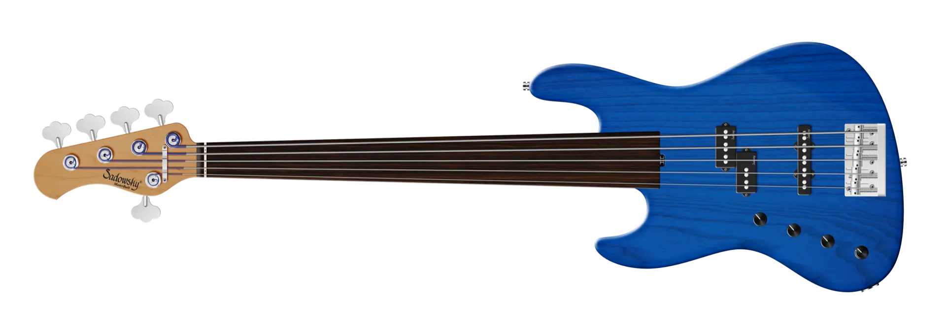 Der Sadowsky 21-Fret Verdine White Artist Line Bass ist eine Hommage an einen der besten Bassisten der Welt! Ausgestattet mit einem Korpus aus amerikanischer Sumpfesche (chambered), einem Hals aus geröstetem amerikanischem Ahorn mit einem Griffbrett aus Tigerstripe Ebony und der berühmten Sadowsky-Elektronik erhalten Sie einen Bass mit dem besonderen Sadowsky-Ton: Niemals harsch oder schrill klingend, mit starken, kraftvollen (aber nie matschigen!) Bässen, Mitten, die präsent, aber nicht zu aggressiv sind, und einem süßen und luftigen Höhenbereich. Diese 5-saitige Fretless Linkshänder-Version hat einen P-Style-Korpus, der in einem Ocean Blue Transparent Satin Finish lackiert ist. Zu den besonderen Merkmalen gehören ein passiver Sadowsky P-Style Tonabnehmer am Hals und ein brummfreier Sadowsky J-Style Tonabnehmer am Steg. Die aktive Elektronik bietet True Bypass, Höhen- und Bassanhebung und Vintage Tone Control. Außerdem verfügt sie über offene Sadowsky-Mechaniken und eine Sadowsky Quick String Release Bridge. Ein Sadowsky MasterBuilt Verdine White Artist Line Bass wird ausschließlich in unserer Werkstatt in Deutschland hergestellt und wiegt nie mehr als 3,8 kg.