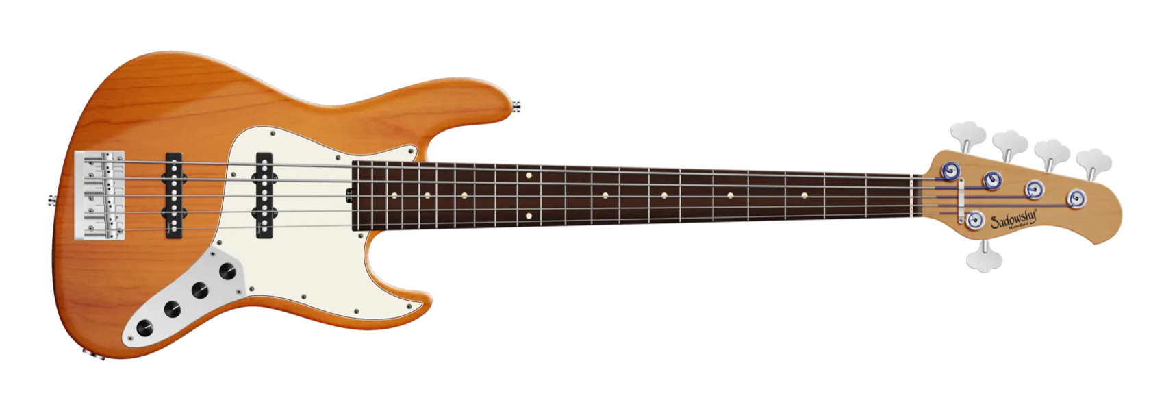 Der Sadowsky MasterBuilt 21-Fret Vintage J/J Bass hat einen tollen Vintage-Vibe! Dank der berühmten Sadowsky-Elektronik erhalten Sie einen Bass im Vintage-Look mit dem speziellen Sadowsky-Ton: Niemals harsch oder schrill klingend, mit starken, kraftvollen (aber niemals matschigen!) Bässen, Mitten, die präsent, aber nicht zu aggressiv sind, und einem süßen und luftigen Höhenbereich. Diese 5-saitige Version hat einen schlanken, unterdimensionierten J-Style-Korpus aus amerikanischer Roterle (chambered), der in einem Honey Violin Transparent Satin Finish lackiert ist. Der satinierte Hals ist aus geröstetem amerikanischem Ahorn gefertigt und hat ein Morado (Pau Ferro) Griffbrett. Zu den besonderen Merkmalen dieses Basses gehören zwei brummfreie Sadowsky J-Style-Tonabnehmer, eine aktive Elektronik mit True Bypass, Treble- und Bass-Boost und Vintage Tone Control. Außerdem verfügt er über leichte, offene Sadowsky-Mechaniken und eine Sadowsky Quick String Release Bridge. Dieser Bass wird ausschließlich in unserer Werkstatt in Deutschland hergestellt und wiegt nie mehr als 3,8 kg. Eine gute Wahl für Bassisten, die einen leichten Bass im Vintage-Stil mit einem modernen Bass-Sound suchen.