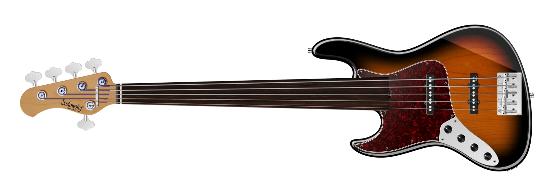 Der Sadowsky MasterBuilt 21-Fret Vintage J/J Bass hat einen tollen Vintage-Vibe! Dank der berühmten Sadowsky-Elektronik erhalten Sie einen Bass im Vintage-Look mit dem speziellen Sadowsky-Ton: Niemals harsch oder schrill klingend, mit starken, kraftvollen (aber niemals matschigen!) Bässen, Mitten, die präsent, aber nicht zu aggressiv sind, und einem süßen und luftigen Höhenbereich. Diese 5-saitige Fretless Linkshänder-Version hat einen schlanken, unterdimensionierten J-Style-Korpus aus amerikanischer Roterle (chambered), der in einem '59 Burst Transparent High Polish Finish lackiert ist. Der satinierte Hals ist aus geröstetem amerikanischem Ahorn gefertigt und hat ein Tigerstripe Ebony Griffbrett. Zu den besonderen Merkmalen dieses Basses gehören zwei brummfreie Sadowsky J-Style-Tonabnehmer, eine aktive Elektronik mit True Bypass, Treble- und Bass-Boost und Vintage Tone Control. Außerdem verfügt er über leichte, offene Sadowsky-Mechaniken und eine Sadowsky Quick String Release Bridge. Dieser Bass wird ausschließlich in unserer Werkstatt in Deutschland hergestellt und wiegt nie mehr als 3,8 kg. Eine gute Wahl für Bassisten, die einen leichten Bass im Vintage-Stil mit einem modernen Bass-Sound suchen.