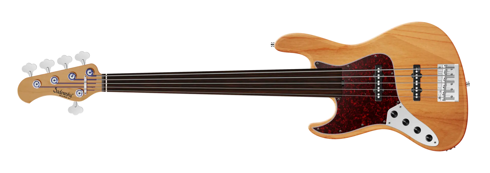 Der Sadowsky MasterBuilt 21-Fret Vintage J/J Bass hat einen tollen Vintage-Vibe! Dank der berühmten Sadowsky-Elektronik erhalten Sie einen Bass im Vintage-Look mit dem speziellen Sadowsky-Ton: Niemals harsch oder schrill klingend, mit starken, kraftvollen (aber niemals matschigen!) Bässen, Mitten, die präsent, aber nicht zu aggressiv sind, und einem süßen und luftigen Höhenbereich. Diese 5-saitige Fretless Linkshänder-Version hat einen schlanken, unterdimensionierten J-Style-Korpus aus amerikanischer Roterle (chambered), der in einem Natural Transparent Satin Finish lackiert ist. Der satinierte Hals ist aus geröstetem amerikanischem Ahorn gefertigt und hat ein Tigerstripe Ebony Griffbrett. Zu den besonderen Merkmalen dieses Basses gehören zwei brummfreie Sadowsky J-Style-Tonabnehmer, eine aktive Elektronik mit True Bypass, Treble- und Bass-Boost und Vintage Tone Control. Außerdem verfügt er über leichte, offene Sadowsky-Mechaniken und eine Sadowsky Quick String Release Bridge. Dieser Bass wird ausschließlich in unserer Werkstatt in Deutschland hergestellt und wiegt nie mehr als 3,8 kg. Eine gute Wahl für Bassisten, die einen leichten Bass im Vintage-Stil mit einem modernen Bass-Sound suchen.