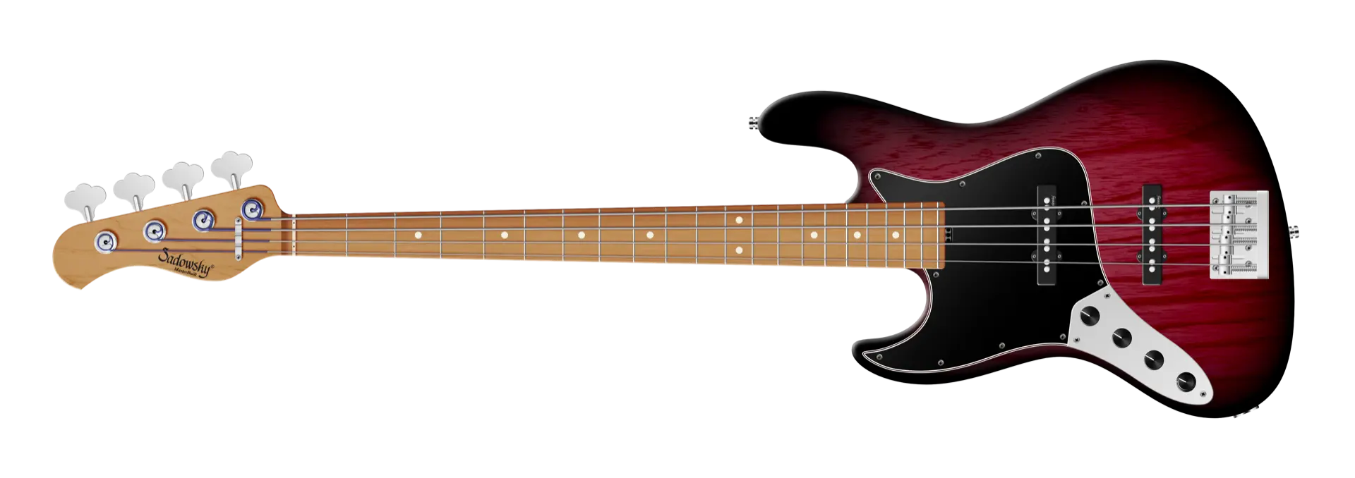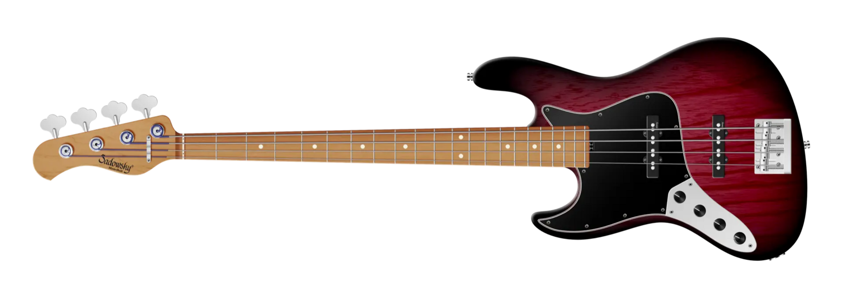 Der Sadowsky MasterBuilt 21-Fret Vintage J/J Bass hat einen tollen Vintage-Vibe! Dank der berühmten Sadowsky-Elektronik erhalten Sie einen Bass im Vintage-Look mit dem speziellen Sadowsky-Ton: Niemals harsch oder schrill klingend, mit starken, kraftvollen (aber niemals matschigen!) Bässen, Mitten, die präsent, aber nicht zu aggressiv sind, und einem süßen und luftigen Höhenbereich. Diese 4-saitige Linkshänder-Version hat einen schlanken, unterdimensionierten J-Style-Korpus aus amerikanischer Sumpfesche (chambered), der in einem Burgundy Blackburst Transparent Satin Finish lackiert ist. Der satinierte Hals ist aus geröstetem amerikanischem Ahorn gefertigt und hat ein Griffbrett aus geröstetem amerikanischem Ahorn. Zu den besonderen Merkmalen dieses Basses gehören zwei brummfreie Sadowsky J-Style-Tonabnehmer, eine aktive Elektronik mit True Bypass, Treble- und Bass-Boost und Vintage Tone Control. Außerdem verfügt er über leichte, offene Sadowsky-Mechaniken und eine Sadowsky Quick String Release Bridge. Dieser Bass wird ausschließlich in unserer Werkstatt in Deutschland hergestellt und wiegt nie mehr als 3,8 kg. Eine gute Wahl für Bassisten, die einen leichten Bass im Vintage-Stil mit einem modernen Bass-Sound suchen.
