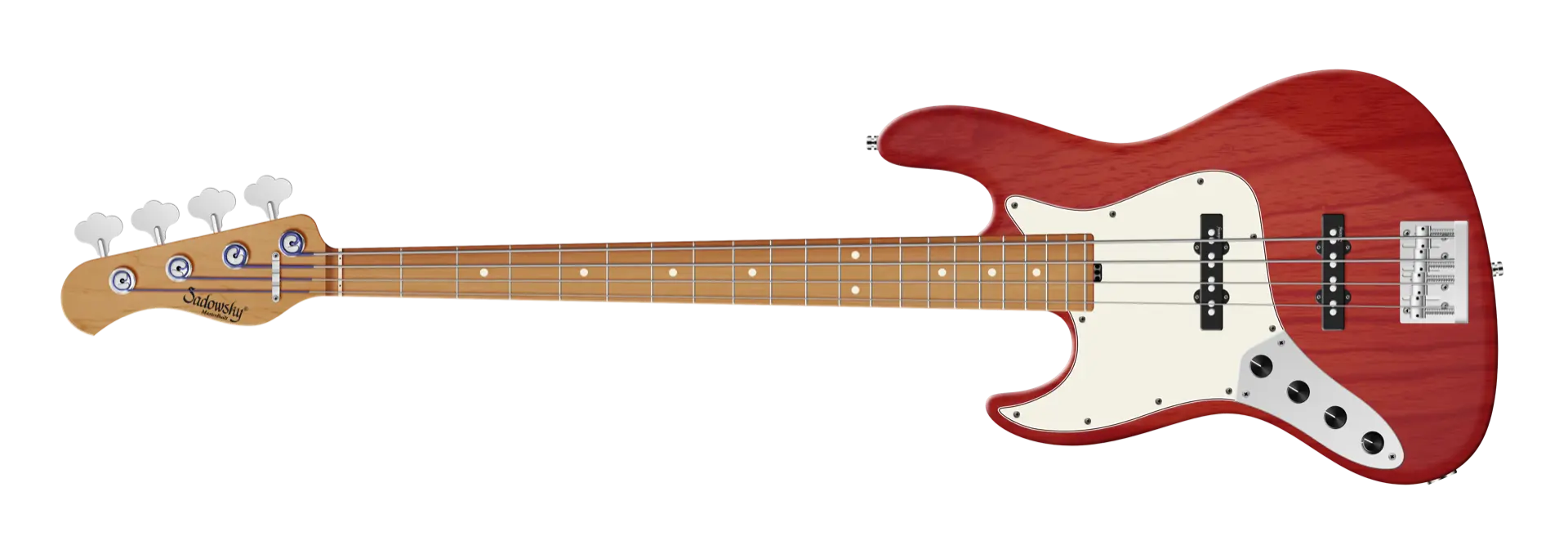 Der Sadowsky MasterBuilt 21-Fret Vintage J/J Bass hat einen tollen Vintage-Vibe! Dank der berühmten Sadowsky-Elektronik erhalten Sie einen Bass im Vintage-Look mit dem speziellen Sadowsky-Ton: Niemals harsch oder schrill klingend, mit starken, kraftvollen (aber niemals matschigen!) Bässen, Mitten, die präsent, aber nicht zu aggressiv sind, und einem süßen und luftigen Höhenbereich. Diese 4-saitige Linkshänder-Version hat einen schlanken, unterdimensionierten J-Style-Korpus aus amerikanischer Sumpfesche (chambered), der in einem Burgundy Red Transparent Satin Finish lackiert ist. Der satinierte Hals ist aus geröstetem amerikanischem Ahorn gefertigt und hat ein Griffbrett aus geröstetem amerikanischem Ahorn. Zu den besonderen Merkmalen dieses Basses gehören zwei brummfreie Sadowsky J-Style-Tonabnehmer, eine aktive Elektronik mit True Bypass, Treble- und Bass-Boost und Vintage Tone Control. Außerdem verfügt er über leichte, offene Sadowsky-Mechaniken und eine Sadowsky Quick String Release Bridge. Dieser Bass wird ausschließlich in unserer Werkstatt in Deutschland hergestellt und wiegt nie mehr als 3,8 kg. Eine gute Wahl für Bassisten, die einen leichten Bass im Vintage-Stil mit einem modernen Bass-Sound suchen.
