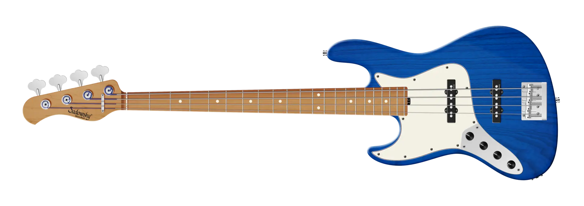 Der Sadowsky MasterBuilt 21-Fret Vintage J/J Bass hat einen tollen Vintage-Vibe! Dank der berühmten Sadowsky-Elektronik erhalten Sie einen Bass im Vintage-Look mit dem speziellen Sadowsky-Ton: Niemals harsch oder schrill klingend, mit starken, kraftvollen (aber niemals matschigen!) Bässen, Mitten, die präsent, aber nicht zu aggressiv sind, und einem süßen und luftigen Höhenbereich. Diese 4-saitige Linkshänder-Version hat einen schlanken, unterdimensionierten J-Style-Korpus aus amerikanischer Sumpfesche (chambered), der in einem Ocean Blue Transparent Satin Finish lackiert ist. Der satinierte Hals ist aus geröstetem amerikanischem Ahorn gefertigt und hat ein Griffbrett aus geröstetem amerikanischem Ahorn. Zu den besonderen Merkmalen dieses Basses gehören zwei brummfreie Sadowsky J-Style-Tonabnehmer, eine aktive Elektronik mit True Bypass, Treble- und Bass-Boost und Vintage Tone Control. Außerdem verfügt er über leichte, offene Sadowsky-Mechaniken und eine Sadowsky Quick String Release Bridge. Dieser Bass wird ausschließlich in unserer Werkstatt in Deutschland hergestellt und wiegt nie mehr als 3,8 kg. Eine gute Wahl für Bassisten, die einen leichten Bass im Vintage-Stil mit einem modernen Bass-Sound suchen.