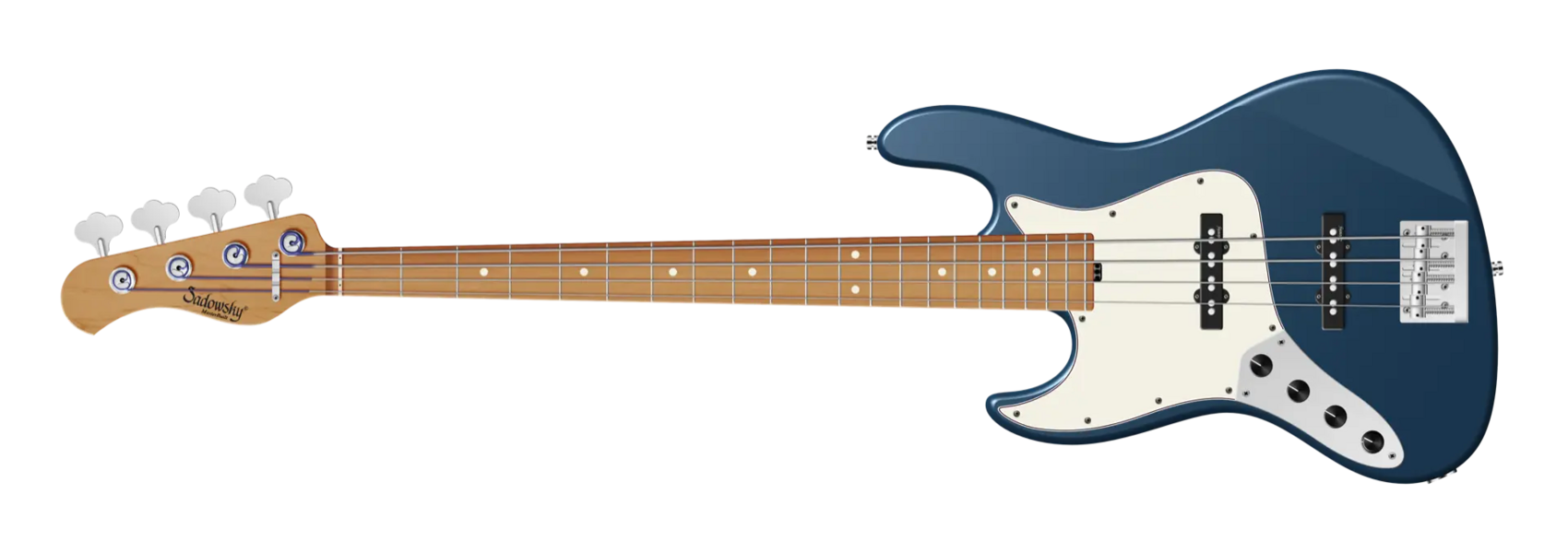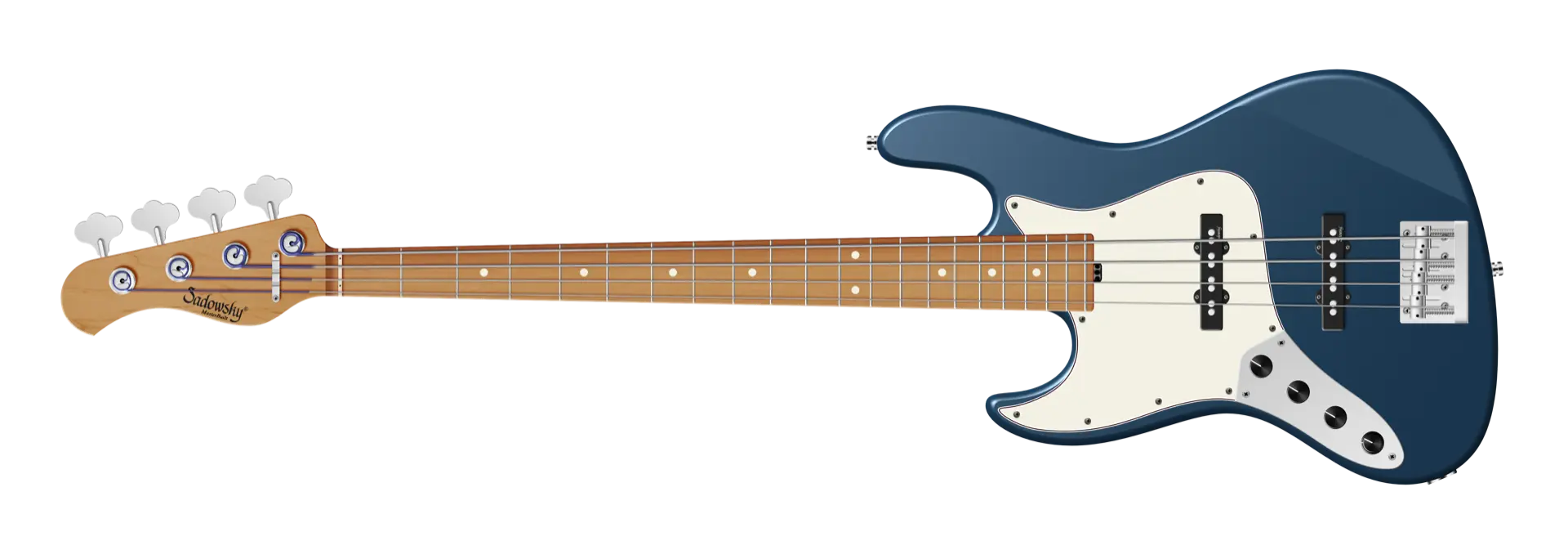 Der Sadowsky MasterBuilt 21-Fret Vintage J/J Bass hat einen tollen Vintage-Vibe! Dank der berühmten Sadowsky-Elektronik erhalten Sie einen Bass im Vintage-Look mit dem speziellen Sadowsky-Ton: Niemals harsch oder schrill klingend, mit starken, kraftvollen (aber niemals matschigen!) Bässen, Mitten, die präsent, aber nicht zu aggressiv sind, und einem süßen und luftigen Höhenbereich. Diese 4-saitige Linkshänder-Version hat einen schlanken, unterdimensionierten J-Style-Korpus aus amerikanischer Sumpfesche (chambered), der in einem Solid Dark Lake Placid Blue Metallic Satin Finish lackiert ist. Der satinierte Hals ist aus geröstetem amerikanischem Ahorn gefertigt und hat ein Griffbrett aus geröstetem amerikanischem Ahorn. Zu den besonderen Merkmalen dieses Basses gehören zwei brummfreie Sadowsky J-Style-Tonabnehmer, eine aktive Elektronik mit True Bypass, Treble- und Bass-Boost und Vintage Tone Control. Außerdem verfügt er über leichte, offene Sadowsky-Mechaniken und eine Sadowsky Quick String Release Bridge. Dieser Bass wird ausschließlich in unserer Werkstatt in Deutschland hergestellt und wiegt nie mehr als 3,8 kg. Eine gute Wahl für Bassisten, die einen leichten Bass im Vintage-Stil mit einem modernen Bass-Sound suchen.