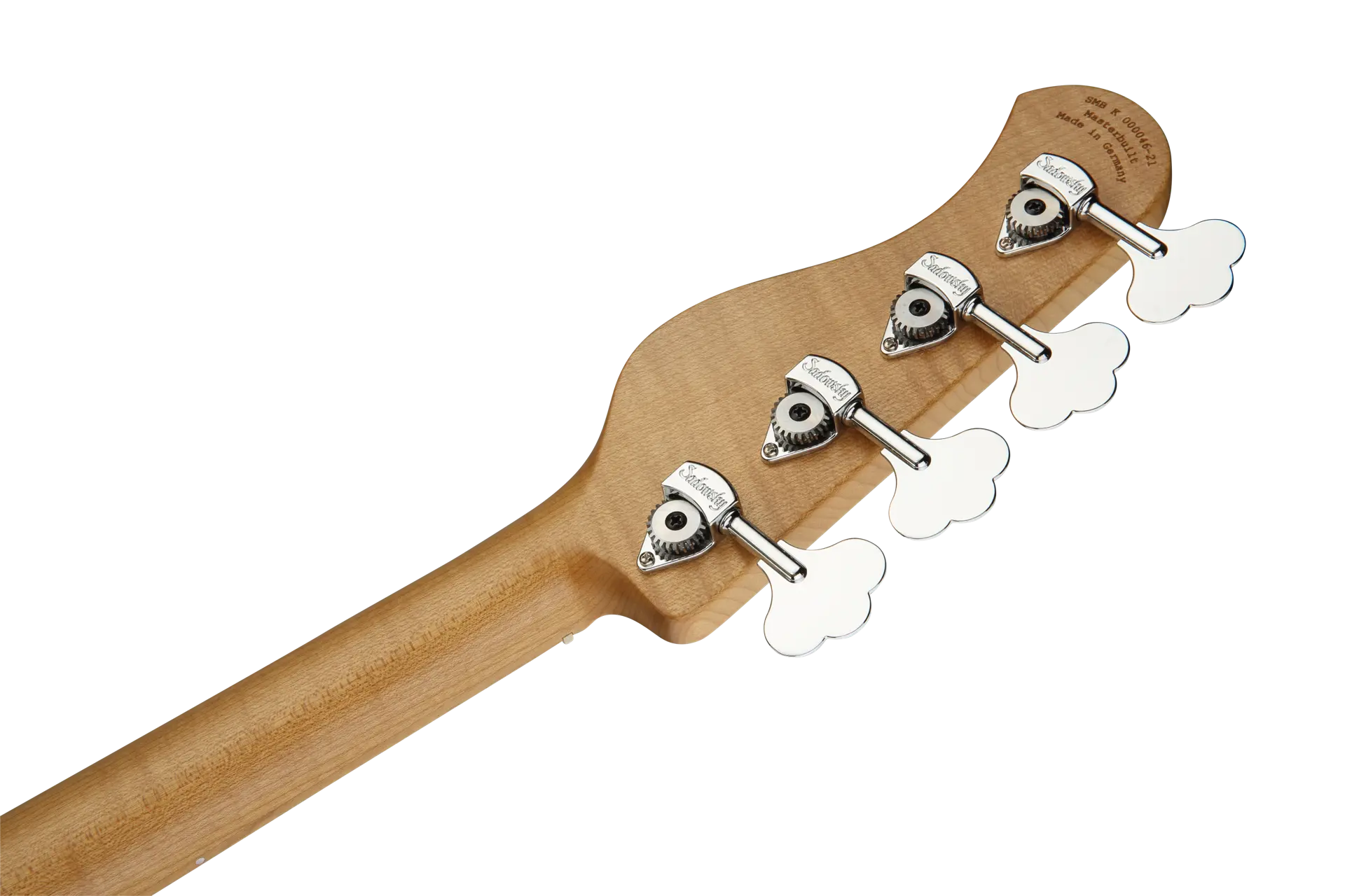 Der Sadowsky MasterBuilt 21-Fret Vintage J/J Bass hat einen tollen Vintage-Vibe! Dank der berühmten Sadowsky-Elektronik erhalten Sie einen Bass im Vintage-Look mit dem speziellen Sadowsky-Ton: Niemals harsch oder schrill klingend, mit starken, kraftvollen (aber niemals matschigen!) Bässen, Mitten, die präsent, aber nicht zu aggressiv sind, und einem süßen und luftigen Höhenbereich. Diese 4-saitige Version hat einen schlanken, unterdimensionierten J-Style-Korpus aus amerikanischer Sumpfesche (chambered), der in einem Solid Black High Polish Finish lackiert ist. Der satinierte Hals ist aus geröstetem amerikanischem Ahorn gefertigt und hat ein Griffbrett aus geröstetem amerikanischem Ahorn. Zu den besonderen Merkmalen dieses Basses gehören zwei brummfreie Sadowsky J-Style-Tonabnehmer, eine aktive Elektronik mit True Bypass, Treble- und Bass-Boost und Vintage Tone Control. Außerdem verfügt er über leichte, offene Sadowsky-Mechaniken und eine Sadowsky Quick String Release Bridge. Dieser Bass wird ausschließlich in unserer Werkstatt in Deutschland hergestellt und wiegt nie mehr als 3,8 kg. Eine gute Wahl für Bassisten, die einen leichten Bass im Vintage-Stil mit einem modernen Bass-Sound suchen.
