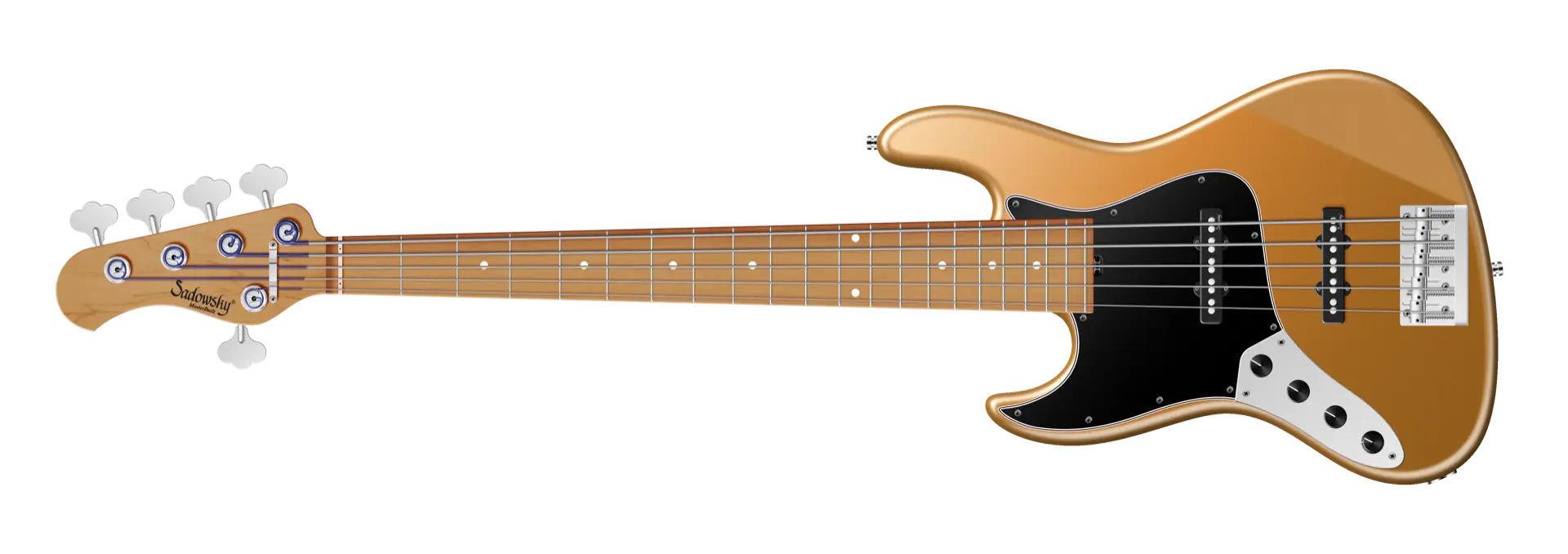 Der Sadowsky MasterBuilt 21-Fret Vintage J/J Bass hat einen tollen Vintage-Vibe! Dank der berühmten Sadowsky-Elektronik erhalten Sie einen Bass im Vintage-Look mit dem speziellen Sadowsky-Ton: Niemals harsch oder schrill klingend, mit starken, kraftvollen (aber niemals matschigen!) Bässen, Mitten, die präsent, aber nicht zu aggressiv sind, und einem süßen und luftigen Höhenbereich. Diese 5-saitige Linkshänder-Version hat einen schlanken, unterdimensionierten J-Style-Korpus aus amerikanischer Sumpfesche (chambered), der in einem Solid Firemist Gold Metallic Satin Finish lackiert ist. Der satinierte Hals ist aus geröstetem amerikanischem Ahorn gefertigt und hat ein Griffbrett aus geröstetem amerikanischem Ahorn. Zu den besonderen Merkmalen dieses Basses gehören zwei brummfreie Sadowsky J-Style-Tonabnehmer, eine aktive Elektronik mit True Bypass, Treble- und Bass-Boost und Vintage Tone Control. Außerdem verfügt er über leichte, offene Sadowsky-Mechaniken und eine Sadowsky Quick String Release Bridge. Dieser Bass wird ausschließlich in unserer Werkstatt in Deutschland hergestellt und wiegt nie mehr als 3,8 kg. Eine gute Wahl für Bassisten, die einen leichten Bass im Vintage-Stil mit einem modernen Bass-Sound suchen.