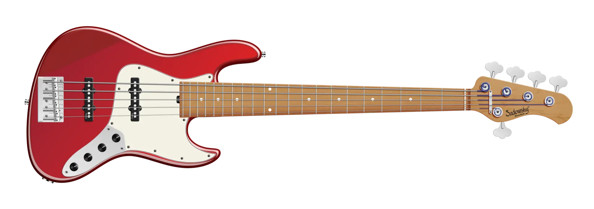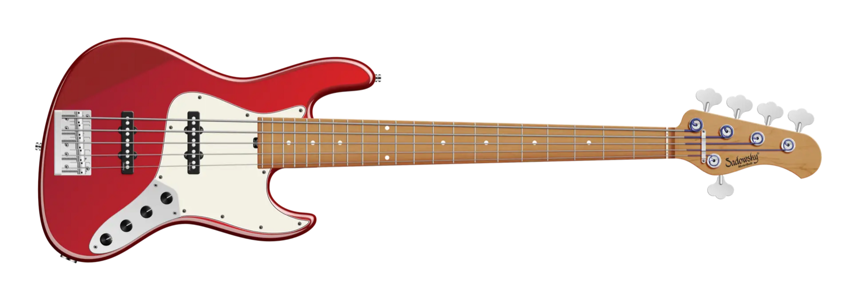 Der Sadowsky MasterBuilt 21-Fret Vintage J/J Bass hat einen tollen Vintage-Vibe! Dank der berühmten Sadowsky-Elektronik erhalten Sie einen Bass im Vintage-Look mit dem speziellen Sadowsky-Ton: Niemals harsch oder schrill klingend, mit starken, kraftvollen (aber niemals matschigen!) Bässen, Mitten, die präsent, aber nicht zu aggressiv sind, und einem süßen und luftigen Höhenbereich. Diese 5-saitige Version hat einen schlanken, unterdimensionierten J-Style-Korpus aus amerikanischer Sumpfesche (chambered), der in einem Solid Candy Apple Red Metallic High Polish Finish lackiert ist. Der satinierte Hals ist aus geröstetem amerikanischem Ahorn gefertigt und hat ein Griffbrett aus geröstetem amerikanischem Ahorn. Zu den besonderen Merkmalen dieses Basses gehören zwei brummfreie Sadowsky J-Style-Tonabnehmer, eine aktive Elektronik mit True Bypass, Treble- und Bass-Boost und Vintage Tone Control. Außerdem verfügt er über leichte, offene Sadowsky-Mechaniken und eine Sadowsky Quick String Release Bridge. Dieser Bass wird ausschließlich in unserer Werkstatt in Deutschland hergestellt und wiegt nie mehr als 3,8 kg. Eine gute Wahl für Bassisten, die einen leichten Bass im Vintage-Stil mit einem modernen Bass-Sound suchen.