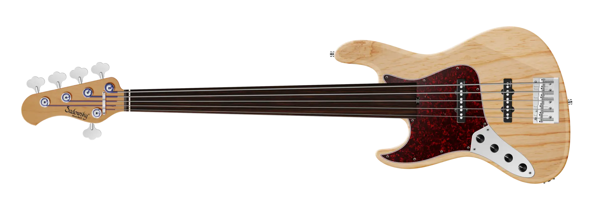 Der Sadowsky MasterBuilt 21-Fret Vintage J/J Bass hat einen tollen Vintage-Vibe! Dank der berühmten Sadowsky-Elektronik erhalten Sie einen Bass im Vintage-Look mit dem speziellen Sadowsky-Ton: Niemals harsch oder schrill klingend, mit starken, kraftvollen (aber niemals matschigen!) Bässen, Mitten, die präsent, aber nicht zu aggressiv sind, und einem süßen und luftigen Höhenbereich. Diese 5-saitige Linkshänder Fretless-Version hat einen schlanken, unterdimensionierten J-Style-Korpus aus amerikanischer Sumpfesche (chambered), der in einem Natural Transparent Satin Finish lackiert ist. Der satinierte Hals ist aus geröstetem amerikanischem Ahorn gefertigt und hat ein Griffbrett aus geröstetem amerikanischem Ahorn. Zu den besonderen Merkmalen dieses Basses gehören zwei brummfreie Sadowsky J-Style-Tonabnehmer, eine aktive Elektronik mit True Bypass, Treble- und Bass-Boost und Vintage Tone Control. Außerdem verfügt er über leichte, offene Sadowsky-Mechaniken und eine Sadowsky Quick String Release Bridge. Dieser Bass wird ausschließlich in unserer Werkstatt in Deutschland hergestellt und wiegt nie mehr als 3,8 kg. Eine gute Wahl für Bassisten, die einen leichten Bass im Vintage-Stil mit einem modernen Bass-Sound suchen.