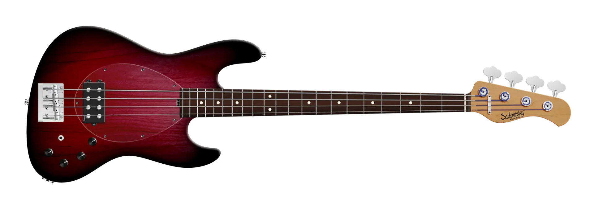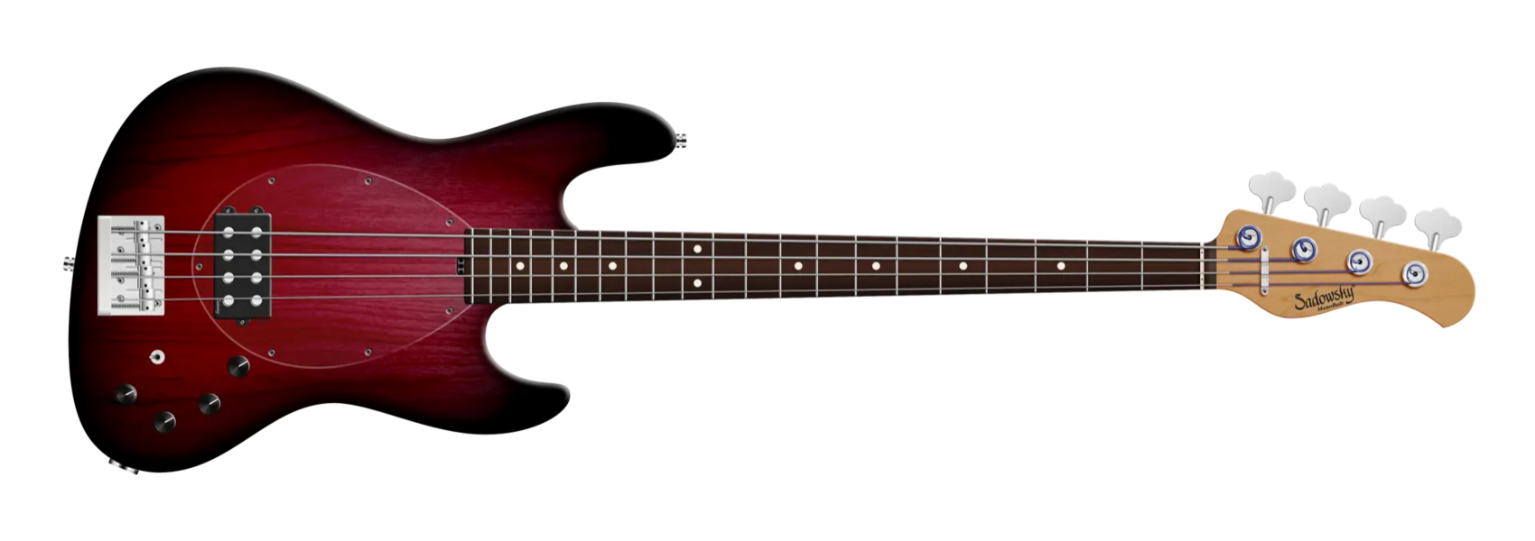 Der Sadowsky MasterBuilt 21-Fret Vintage M Bass bietet das Aussehen und das Spielgefühl eines Vintage M Basses, aber mit dem modernen Sadowsky-Ton. Dieser 4-saitige Bass, hier in einem Burgundy Blackburst Transparent Satin-Finish, verfügt über einen schlanken, unterdimensionierten J-Style Korpus aus amerikanischem Roterle (chambered). Der Hals ist aus geröstetem amerikanischem Ahorn und verfügt über ein Morado (Pau Ferro) Griffbrett. Zu den besonderen Merkmalen dieses Basses gehören ein passiver Sadowsky Quad-Coil Humbucker mit Alnico V Magneten und eine aktive Elektronik mit True Bypass, Vintage Tone Control, Treble und Bass Boost und einem 3-Wege-Kippschalter für die Humbucker-Pickup-Konfiguration (Serie / Parallel / Single Coil). Dieser Bass verfügt außerdem über leichte, offene Sadowsky-Mechaniken und die Sadowsky Quick String Release Bridge. Jeder Sadowsky MasterBuilt Vintage M Bass wird ausschließlich in Deutschland gefertigt. Das Gewicht dieses Basses beträgt nie mehr als 3,8 kg. Eine gute Wahl für Spieler, die einen leichten Bass suchen, der einen modernen Bass-Sound bietet.