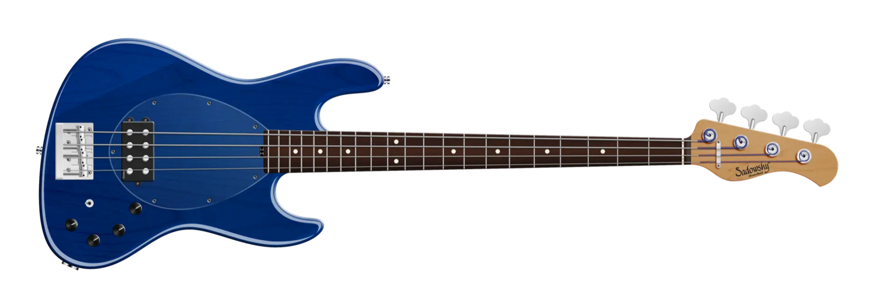 Der Sadowsky MasterBuilt 21-Fret Vintage M Bass bietet das Aussehen und das Spielgefühl eines Vintage M Basses, aber mit dem modernen Sadowsky-Ton. Dieser 4-saitige Bass, hier in einem Ocean Blue Transparent High Polish-Finish, verfügt über einen schlanken, unterdimensionierten J-Style Korpus aus amerikanischem Roterle (chambered). Der Hals ist aus geröstetem amerikanischem Ahorn und verfügt über ein Morado (Pau Ferro) Griffbrett. Zu den besonderen Merkmalen dieses Basses gehören ein passiver Sadowsky Quad-Coil Humbucker mit Alnico V Magneten und eine aktive Elektronik mit True Bypass, Vintage Tone Control, Treble und Bass Boost und einem 3-Wege-Kippschalter für die Humbucker-Pickup-Konfiguration (Serie / Parallel / Single Coil). Dieser Bass verfügt außerdem über leichte, offene Sadowsky-Mechaniken und die Sadowsky Quick String Release Bridge. Jeder Sadowsky MasterBuilt Vintage M Bass wird ausschließlich in Deutschland gefertigt. Das Gewicht dieses Basses beträgt nie mehr als 3,8 kg. Eine gute Wahl für Spieler, die einen leichten Bass suchen, der einen modernen Bass-Sound bietet.