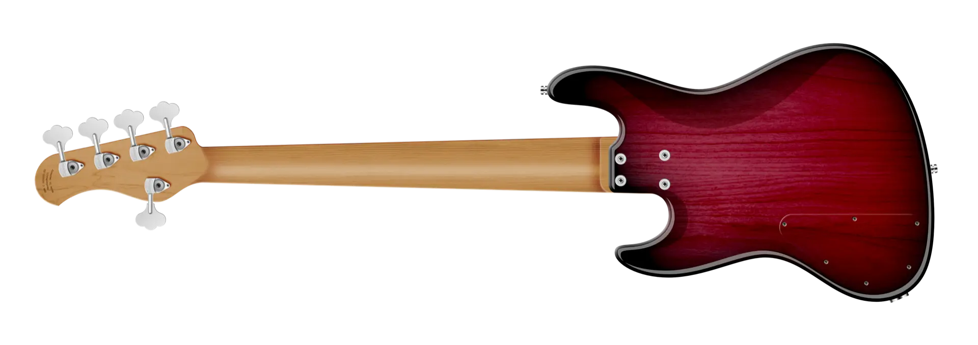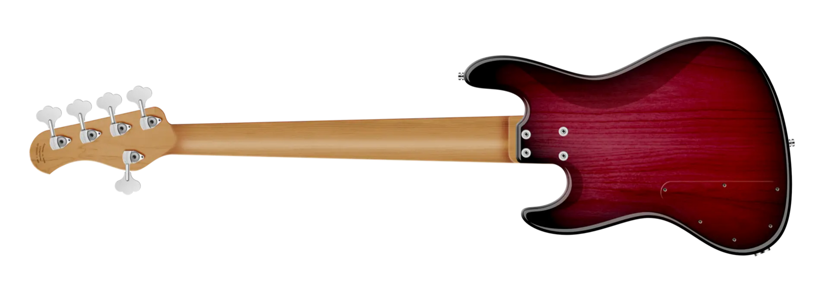 Der Sadowsky MasterBuilt 21-Fret Vintage M Bass bietet das Aussehen und das Spielgefühl eines Vintage M Basses, aber mit dem modernen Sadowsky-Ton. Dieser 5-saitige Bass, hier in einem Burgundy Blackburst Transparent High Polish-Finish, verfügt über einen schlanken, unterdimensionierten J-Style Korpus aus amerikanischem Roterle (chambered). Der Hals ist aus geröstetem amerikanischem Ahorn und verfügt über ein Morado (Pau Ferro) Griffbrett. Zu den besonderen Merkmalen dieses Basses gehören ein passiver Sadowsky Quad-Coil Humbucker mit Alnico V Magneten und eine aktive Elektronik mit True Bypass, Vintage Tone Control, Treble und Bass Boost und einem 3-Wege-Kippschalter für die Humbucker-Pickup-Konfiguration (Serie / Parallel / Single Coil). Dieser Bass verfügt außerdem über leichte, offene Sadowsky-Mechaniken und die Sadowsky Quick String Release Bridge. Jeder Sadowsky MasterBuilt Vintage M Bass wird ausschließlich in Deutschland gefertigt. Das Gewicht dieses Basses beträgt nie mehr als 3,8 kg. Eine gute Wahl für Spieler, die einen leichten Bass suchen, der einen modernen Bass-Sound bietet.