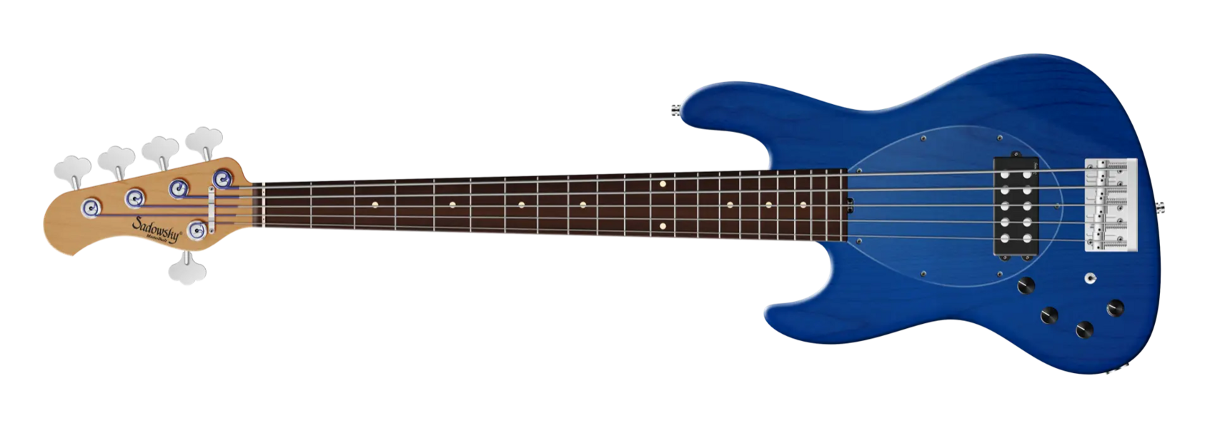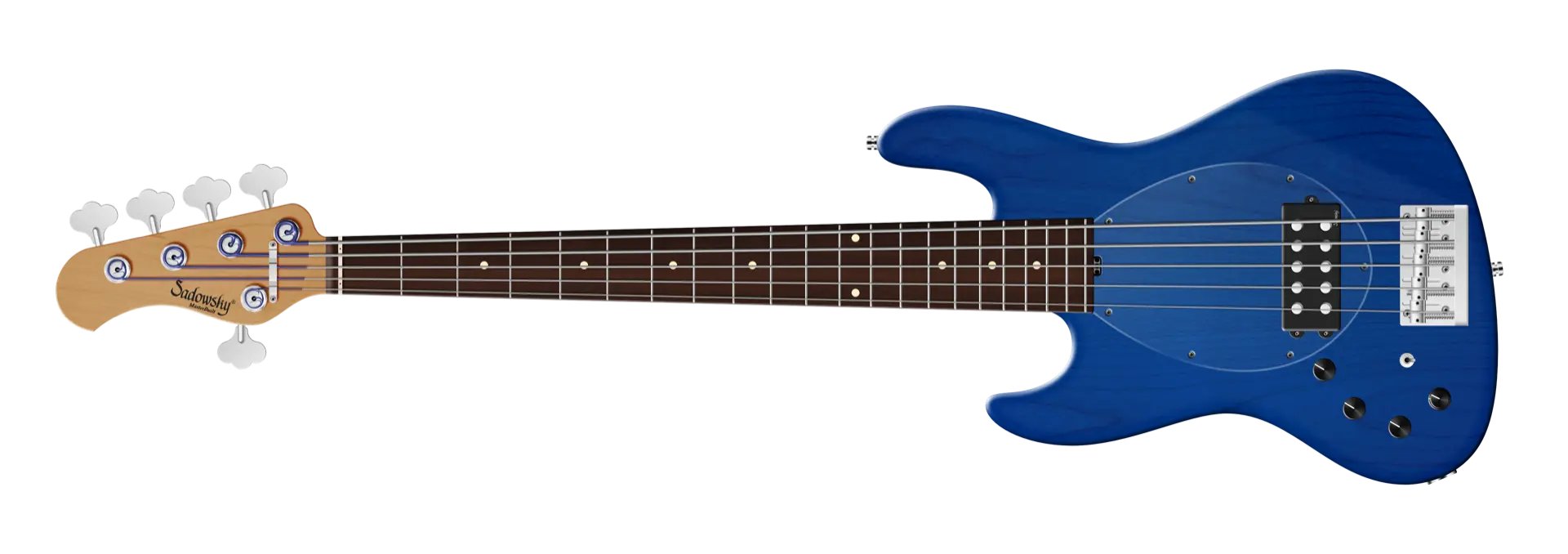 Der Sadowsky MasterBuilt 21-Fret Vintage M Bass bietet das Aussehen und das Spielgefühl eines Vintage M Basses, aber mit dem modernen Sadowsky-Ton. Dieser 5-saitige Linkshänder-Bass, hier in einem Ocean Blue Transparent Satin-Finish, verfügt über einen schlanken, unterdimensionierten J-Style Korpus aus amerikanischem Roterle (chambered). Der Hals ist aus geröstetem amerikanischem Ahorn und verfügt über ein Morado (Pau Ferro) Griffbrett. Zu den besonderen Merkmalen dieses Basses gehören ein passiver Sadowsky Quad-Coil Humbucker mit Alnico V Magneten und eine aktive Elektronik mit True Bypass, Vintage Tone Control, Treble und Bass Boost und einem 3-Wege-Kippschalter für die Humbucker-Pickup-Konfiguration (Serie / Parallel / Single Coil). Dieser Bass verfügt außerdem über leichte, offene Sadowsky-Mechaniken und die Sadowsky Quick String Release Bridge. Jeder Sadowsky MasterBuilt Vintage M Bass wird ausschließlich in Deutschland gefertigt. Das Gewicht dieses Basses beträgt nie mehr als 3,8 kg. Eine gute Wahl für Spieler, die einen leichten Bass suchen, der einen modernen Bass-Sound bietet.