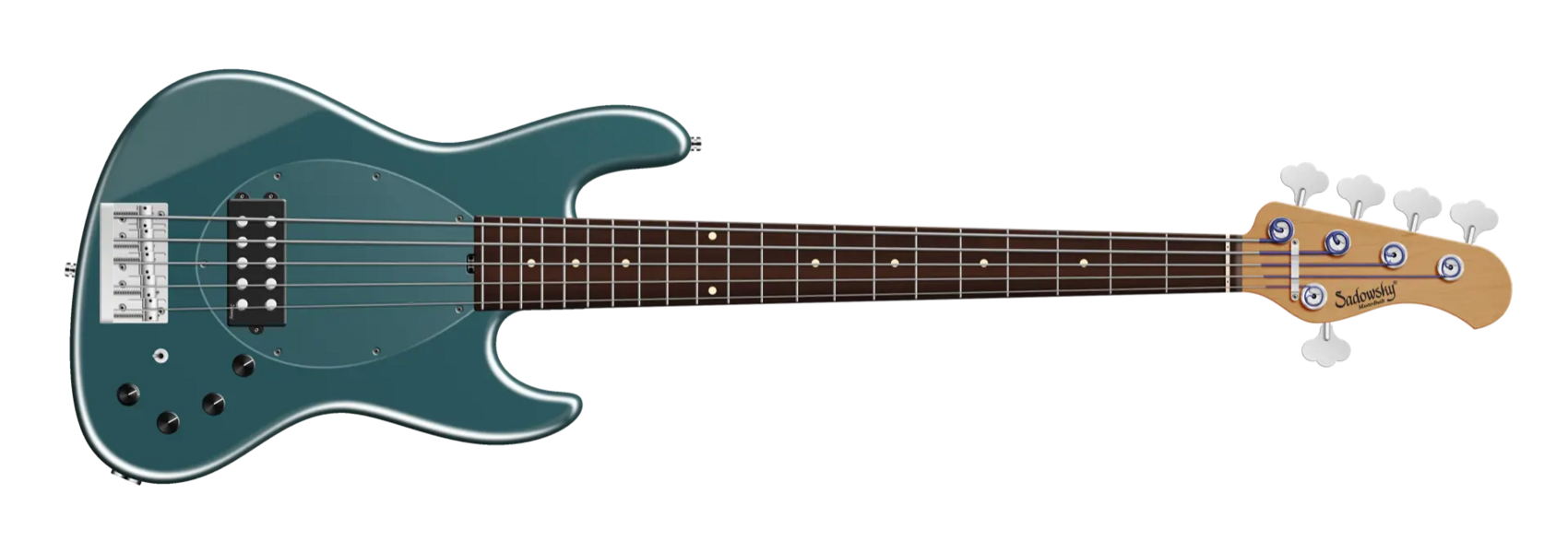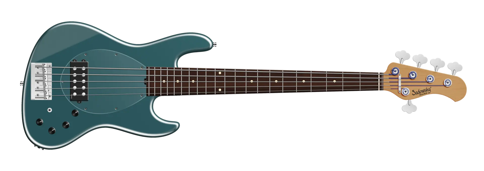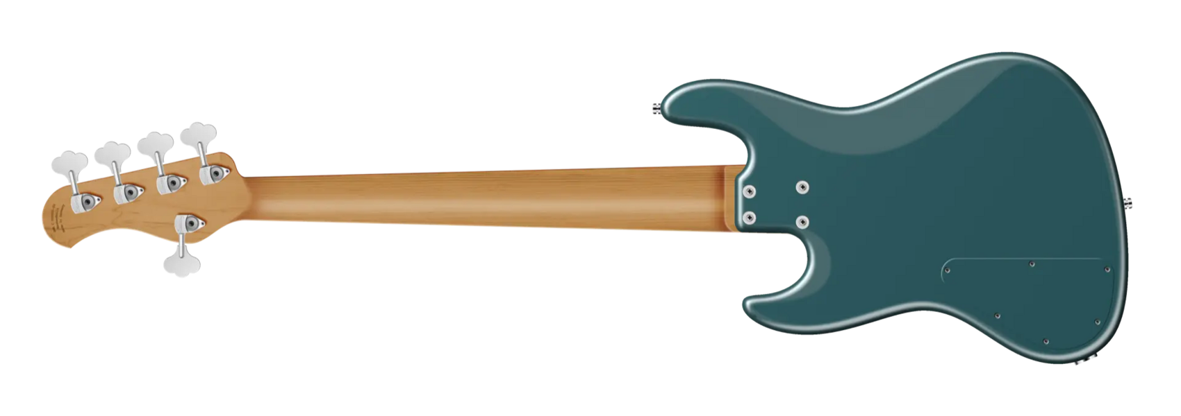 Der Sadowsky MasterBuilt 21-Fret Vintage M Bass bietet das Aussehen und das Spielgefühl eines Vintage M Basses, aber mit dem modernen Sadowsky-Ton. Dieser 5-saitige Bass, hier in einem Solid Vintage Teal Green Metallic Satin-Finish, verfügt über einen schlanken, unterdimensionierten J-Style Korpus aus amerikanischem Roterle (chambered). Der Hals ist aus geröstetem amerikanischem Ahorn und verfügt über ein Morado (Pau Ferro) Griffbrett. Zu den besonderen Merkmalen dieses Basses gehören ein passiver Sadowsky Quad-Coil Humbucker mit Alnico V Magneten und eine aktive Elektronik mit True Bypass, Vintage Tone Control, Treble und Bass Boost und einem 3-Wege-Kippschalter für die Humbucker-Pickup-Konfiguration (Serie / Parallel / Single Coil). Dieser Bass verfügt außerdem über leichte, offene Sadowsky-Mechaniken und die Sadowsky Quick String Release Bridge. Jeder Sadowsky MasterBuilt Vintage M Bass wird ausschließlich in Deutschland gefertigt. Das Gewicht dieses Basses beträgt nie mehr als 3,8 kg. Eine gute Wahl für Spieler, die einen leichten Bass suchen, der einen modernen Bass-Sound bietet.