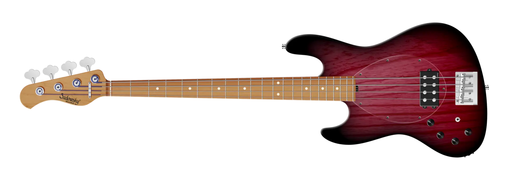 Der Sadowsky MasterBuilt 21-Fret Vintage M Bass bietet das Aussehen und das Spielgefühl eines Vintage M Basses, aber mit dem modernen Sadowsky-Ton. Dieser 4-saitige Linkshänder Bass, hier in einem Burgundy Blackburst Transparent Satin-Finish, verfügt über einen schlanken, unterdimensionierten J-Style Korpus aus amerikanischer Sumpfesche (chambered). Der Hals ist aus geröstetem amerikanischem Ahorn gefertigt und hat ein Griffbrett aus geröstetem amerikanischem Ahorn. Zu den besonderen Merkmalen dieses Basses gehören ein passiver Sadowsky Quad-Coil Humbucker mit Alnico V Magneten und eine aktive Elektronik mit True Bypass, Vintage Tone Control, Treble und Bass Boost und einem 3-Wege-Kippschalter für die Humbucker-Pickup-Konfiguration (Serie / Parallel / Single Coil). Dieser Bass verfügt außerdem über leichte, offene Sadowsky-Mechaniken und die Sadowsky Quick String Release Bridge. Jeder Sadowsky MasterBuilt Vintage M Bass wird ausschließlich in Deutschland gefertigt. Das Gewicht dieses Basses beträgt nie mehr als 3,8 kg. Eine gute Wahl für Spieler, die einen leichten Bass suchen, der einen modernen Bass-Sound bietet.