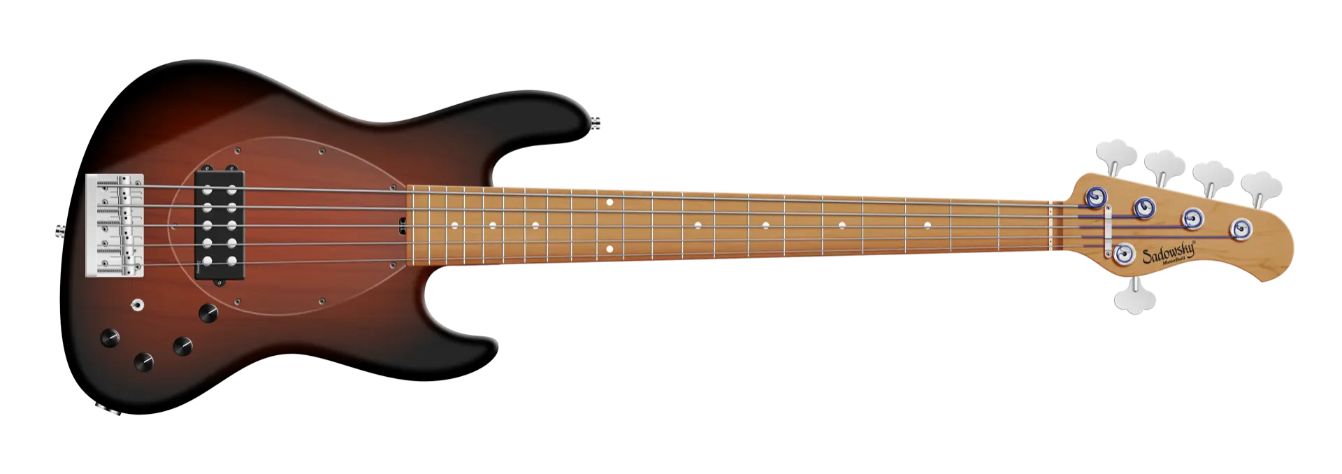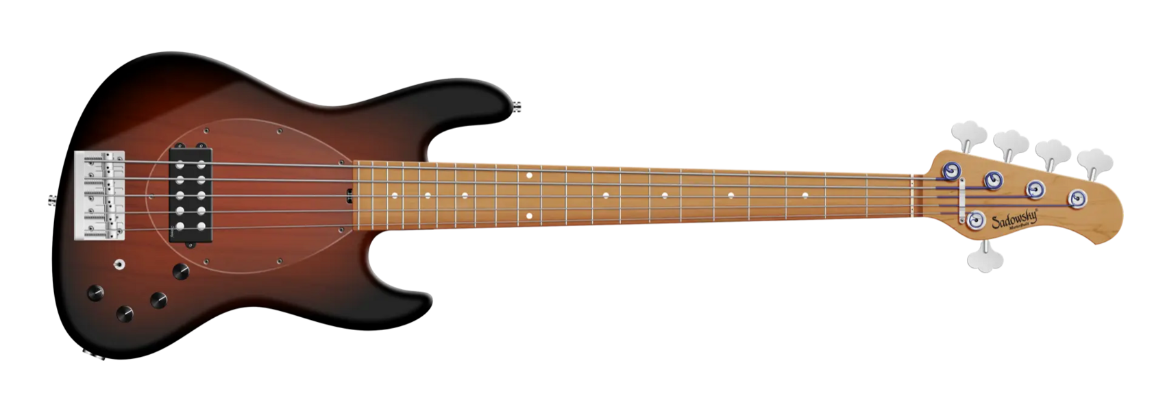 Der Sadowsky MasterBuilt 21-Fret Vintage M Bass bietet das Aussehen und das Spielgefühl eines Vintage M Basses, aber mit dem modernen Sadowsky-Ton. Dieser 5-saitige Bass, hier in einem Almond Sunburst Transparent Satin-Finish, verfügt über einen schlanken, unterdimensionierten J-Style Korpus aus amerikanischer Sumpfesche (chambered). Der Hals ist aus geröstetem amerikanischem Ahorn gefertigt und hat ein Griffbrett aus geröstetem amerikanischem Ahorn. Zu den besonderen Merkmalen dieses Basses gehören ein passiver Sadowsky Quad-Coil Humbucker mit Alnico V Magneten und eine aktive Elektronik mit True Bypass, Vintage Tone Control, Treble und Bass Boost und einem 3-Wege-Kippschalter für die Humbucker-Pickup-Konfiguration (Serie / Parallel / Single Coil). Dieser Bass verfügt außerdem über leichte, offene Sadowsky-Mechaniken und die Sadowsky Quick String Release Bridge. Jeder Sadowsky MasterBuilt Vintage M Bass wird ausschließlich in Deutschland gefertigt. Das Gewicht dieses Basses beträgt nie mehr als 3,8 kg. Eine gute Wahl für Spieler, die einen leichten Bass suchen, der einen modernen Bass-Sound bietet.