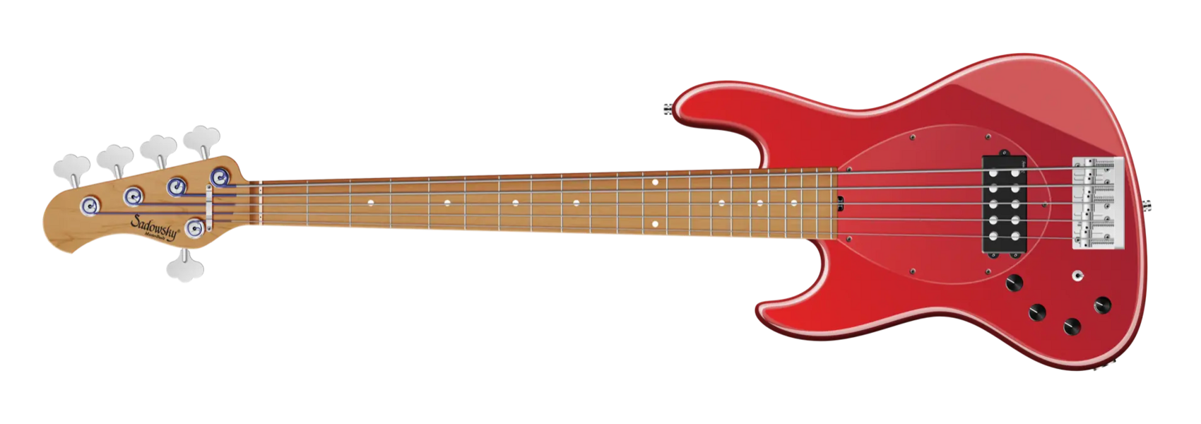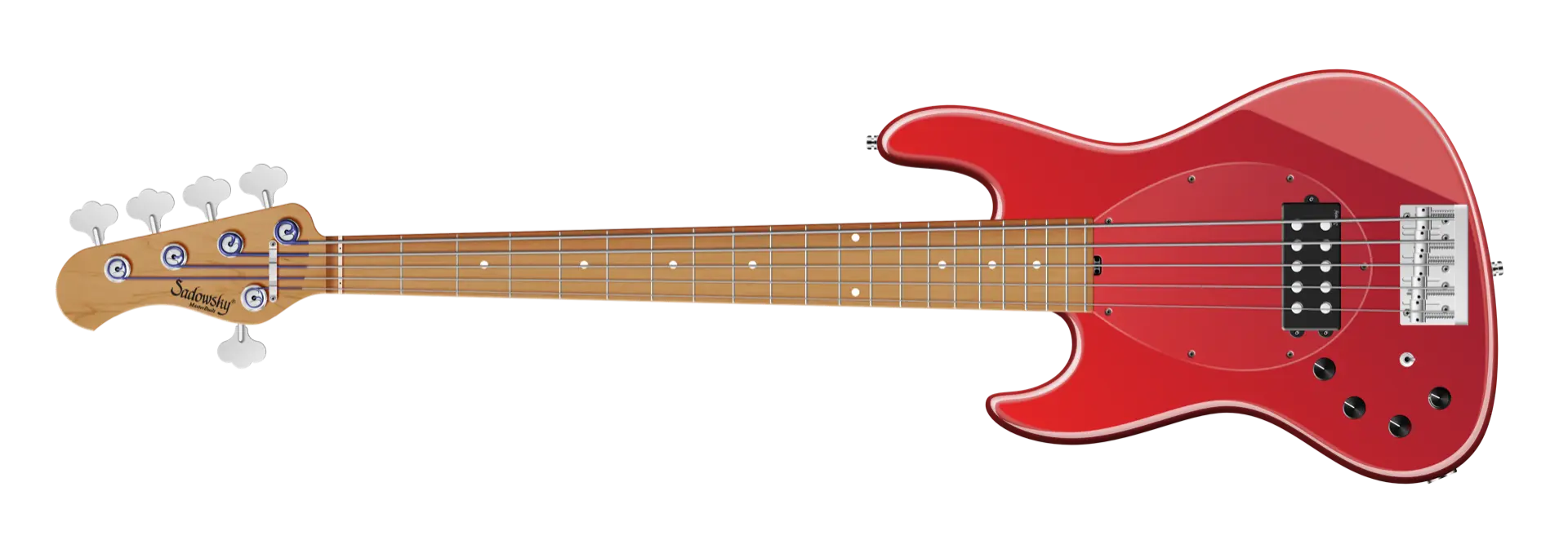 Der Sadowsky MasterBuilt 21-Fret Vintage M Bass bietet das Aussehen und das Spielgefühl eines Vintage M Basses, aber mit dem modernen Sadowsky-Ton. Dieser 5-saitige Linkshänder Bass, hier in einem Solid Dakota Red High Polish-Finish, verfügt über einen schlanken, unterdimensionierten J-Style Korpus aus amerikanischer Sumpfesche (chambered). Der Hals ist aus geröstetem amerikanischem Ahorn gefertigt und hat ein Griffbrett aus geröstetem amerikanischem Ahorn. Zu den besonderen Merkmalen dieses Basses gehören ein passiver Sadowsky Quad-Coil Humbucker mit Alnico V Magneten und eine aktive Elektronik mit True Bypass, Vintage Tone Control, Treble und Bass Boost und einem 3-Wege-Kippschalter für die Humbucker-Pickup-Konfiguration (Serie / Parallel / Single Coil). Dieser Bass verfügt außerdem über leichte, offene Sadowsky-Mechaniken und die Sadowsky Quick String Release Bridge. Jeder Sadowsky MasterBuilt Vintage M Bass wird ausschließlich in Deutschland gefertigt. Das Gewicht dieses Basses beträgt nie mehr als 3,8 kg. Eine gute Wahl für Spieler, die einen leichten Bass suchen, der einen modernen Bass-Sound bietet.
