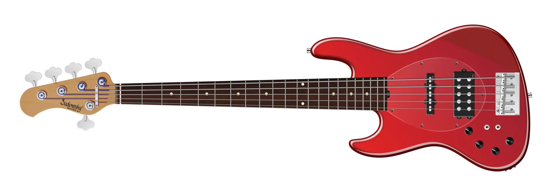 Der Sadowsky MasterBuilt 21-Fret Vintage M/J Bass bietet das Aussehen eines Vintage M/J Basses, aber mit dem berühmten modernen Sadowsky Ton. Dieser 5-saitige Linkshänder-Bass, hier in einem Solid Candy Apple Red Metallic High Polish Finish, hat einen schlanken, unterdimensionierten J-Style Korpus aus amerikanischer Roterle (chambered). Der Hals ist aus geröstetem amerikanischem Ahorn und verfügt über ein Morado (Pau Ferro) Griffbrett. Zu den besonderen Merkmalen dieses Basses gehören ein brummunterdrückender Sadowsky J-Style Halstonabnehmer und ein Sadowsky Quad-Coil Humbucker mit Alnico V Magneten. Die aktive Elektronik verfügt über True Bypass, Vintage Tone Control, Treble und Bass Boost und zwei 3-Wege-Kippschalter für Pickup-Konfiguration (Serie / Parallel / Single Coil). Dieser Bass verfügt außerdem über leichte, offene Sadowsky-Mechaniken und die Sadowsky Quick String Release Bridge. Sadowsky MasterBuilt 21-Fret Vintage M/J Bässe werden ausschließlich in Deutschland hergestellt. Das Gewicht dieses Basses beträgt nie mehr als 3,8 kg. Eine gute Wahl für Spieler, die einen leichten Bass suchen, der einen modernen Bass-Sound bietet.