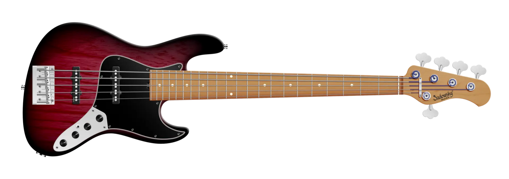 Will Lee ist einer der besten und gefragtesten Bassisten der Welt (er spielte für Late Night / Late Show with David Letterman, Horace Silver, George Benson, Bette Middler und viele mehr). Der Sadowsky MasterBuilt 22-Fret Will Lee Artist Line Bass ist eine Hommage an seine unglaublichen Spielfähigkeiten. Mit dem berühmten modernen Sadowsky-Basston klingt er nie hart oder schrill, sondern hat starke, kraftvolle (aber nie matschige) Bässe, präsente (aber nicht zu aggressive) Mitten und einen süßen und luftigen Diskant. Hier als 5-saitige Version mit einer Burgundy Blackburst Transparent Satin Finish über einem schlanken, unterdimensionierten, J-Style-Korpus aus amerikanischer Sumpfesche (chambered) zu sehen, verfügt dieser Bass über einen einzigartigen schlanken Hals aus geröstetem amerikanischem Ahorn mit einem gerösteten amerikanischen Ahorn Griffbrett. Dazu kommen passive Sadowsky J/J-Tonabnehmer und eine aktive Elektronik mit True Bypass, ein nach Will Lees eigenen Vorgaben gebauter Custom Preamp mit zusätzlicher Mittenanhebung (500 und 800 Hz) für mehr Punch, sowie Vintage Tone Control, Treble und Bass Boost. Sadowsky MasterBuilt Will Lee Artist Line Bässe werden ausschließlich in Deutschland hergestellt. Das Gewicht dieses Basses beträgt nie mehr als 3,8 kg.