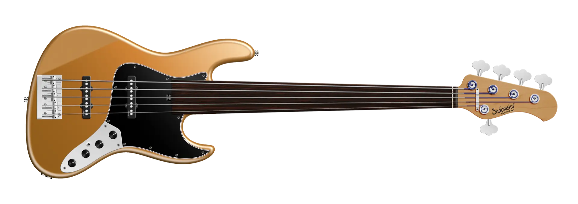Will Lee ist einer der besten und gefragtesten Bassisten der Welt (er spielte für Late Night / Late Show with David Letterman, Horace Silver, George Benson, Bette Middler und viele mehr). Der Sadowsky MasterBuilt 22-Fret Will Lee Artist Line Bass ist eine Hommage an seine unglaublichen Spielfähigkeiten. Mit dem berühmten modernen Sadowsky-Basston klingt er nie hart oder schrill, sondern hat starke, kraftvolle (aber nie matschige) Bässe, präsente (aber nicht zu aggressive) Mitten und einen süßen und luftigen Diskant. Hier als 5-saitige Fretless-Version mit einer Solid Firemist Gold Metallic Satin Finish über einem schlanken, unterdimensionierten, J-Style-Korpus aus amerikanischer Sumpfesche (chambered) zu sehen, verfügt dieser Bass über einen einzigartigen schlanken Hals aus geröstetem amerikanischem Ahorn mit einem Tigerstripe Ebony Griffbrett. Dazu kommen passive Sadowsky J/J-Tonabnehmer und eine aktive Elektronik mit True Bypass, ein nach Will Lees eigenen Vorgaben gebauter Custom Preamp mit zusätzlicher Mittenanhebung (500 und 800 Hz) für mehr Punch, sowie Vintage Tone Control, Treble und Bass Boost. Sadowsky MasterBuilt Will Lee Artist Line Bässe werden ausschließlich in Deutschland hergestellt. Das Gewicht dieses Basses beträgt nie mehr als 3,8 kg.
