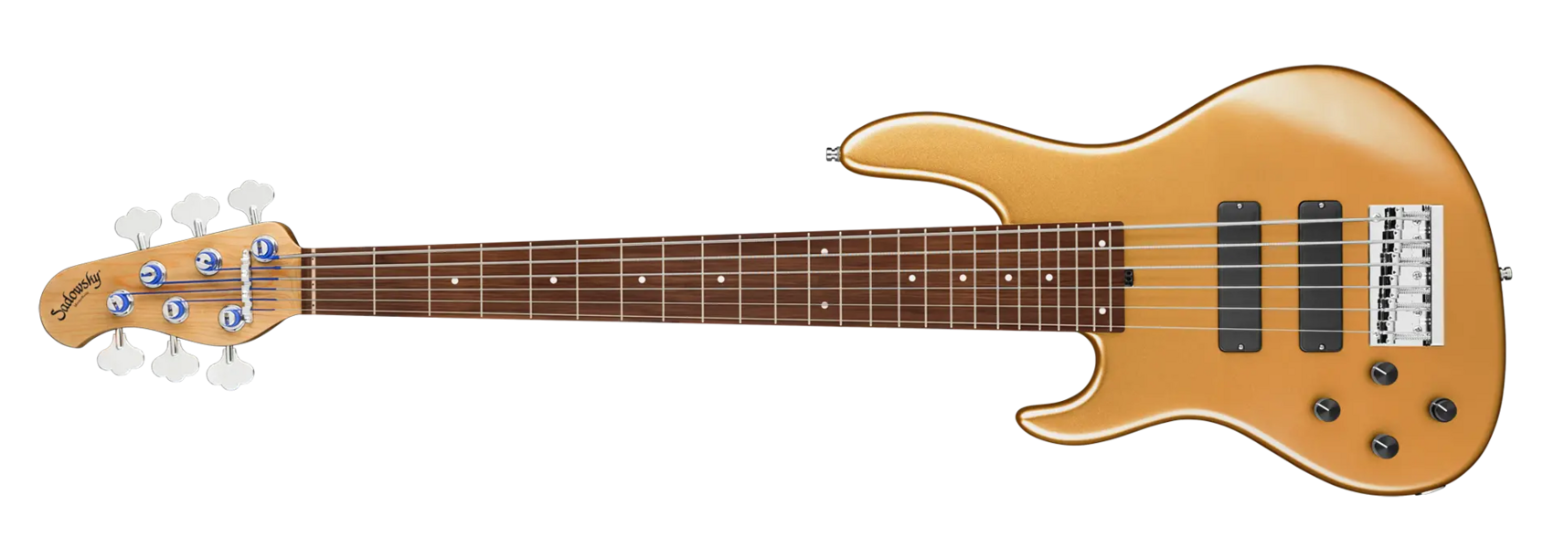 Der Sadowsky MasterBuilt 24-Fret Modern Bass ist perfekt für alle Spieler, die einen modernen Bass mit dem berühmten Sadowsky-Ton suchen: Niemals harsch oder schrill klingend, mit starken, kraftvollen, aber nie matschigen Bässen, mit präsenten, aber nicht zu aggressiven Mitten und einem süßen und luftigen Höhenbereich. Dieser 6-saitige Linkshänder-Bass hat einen Korpus aus amerikanischer Roterle (chambered) mit einer Solid Firemist Gold Metallic Satin-Lackierung. Die Korpusform ist schlank und unterdimensioniert mit tieferen Cutaways für bessere Bespielbarkeit und einen vollen Tonumfang von zwei Oktaven. Der Hals ist aus geröstetem amerikanischem Ahorn gefertigt und hat ein Morado (Pau Ferro) Griffbrett. Der Bass ist mit zwei passiven Sadowsky Soapbar-Tonabnehmern ausgestattet, beide in moderner Position, und verfügt über eine aktive Elektronik, die True Bypass, Vintage Tone Control sowie Treble- und Bass-Boost bietet. Die Hardware umfasst Sadowsky Light Open Gear Mechaniken und eine Sadowsky Quick String Release Brücke. Jeder Sadowsky MasterBuilt 24-Fret Modern Bass wird ausschließlich in unserer Werkstatt in Deutschland gefertigt und wiegt nicht mehr als 4,17 kg. Eine gute Wahl für Bassisten, die einen leichten, modern aussehenden Bass mit dem speziellen modernen Sadowsky-Sound suchen.