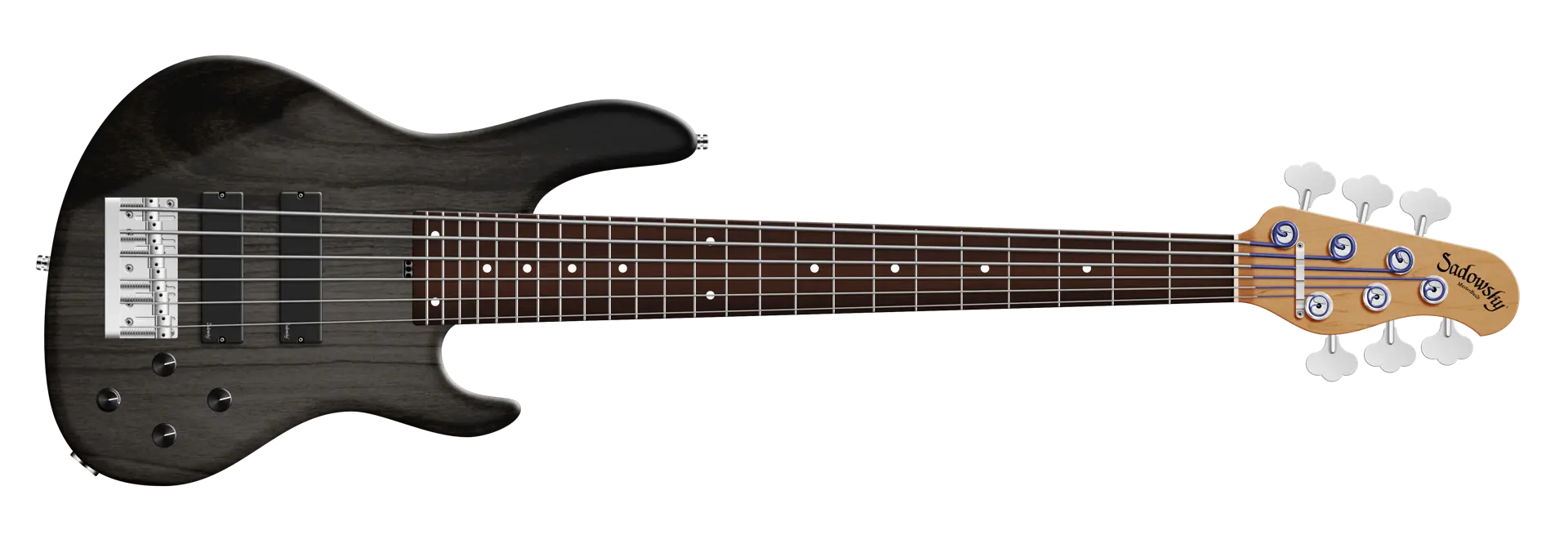 Der Sadowsky MasterBuilt 24-Fret Modern Bass ist perfekt für alle Spieler, die einen modernen Bass mit dem berühmten Sadowsky-Ton suchen: Niemals harsch oder schrill klingend, mit starken, kraftvollen, aber nie matschigen Bässen, mit präsenten, aber nicht zu aggressiven Mitten und einem süßen und luftigen Höhenbereich. Dieser 6-saitige Bass hat einen Korpus aus amerikanischer Roterle (chambered) mit einer Nirvana Black Transparent Satin-Lackierung. Die Korpusform ist schlank und unterdimensioniert mit tieferen Cutaways für bessere Bespielbarkeit und einen vollen Tonumfang von zwei Oktaven. Der Hals ist aus geröstetem amerikanischem Ahorn gefertigt und hat ein Morado (Pau Ferro) Griffbrett. Der Bass ist mit zwei passiven Sadowsky Soapbar-Tonabnehmern ausgestattet, beide in moderner Position, und verfügt über eine aktive Elektronik, die True Bypass, Vintage Tone Control sowie Treble- und Bass-Boost bietet. Die Hardware umfasst Sadowsky Light Open Gear Mechaniken und eine Sadowsky Quick String Release Brücke. Jeder Sadowsky MasterBuilt 24-Fret Modern Bass wird ausschließlich in unserer Werkstatt in Deutschland gefertigt und wiegt nicht mehr als 4,17 kg. Eine gute Wahl für Bassisten, die einen leichten, modern aussehenden Bass mit dem speziellen modernen Sadowsky-Sound suchen.