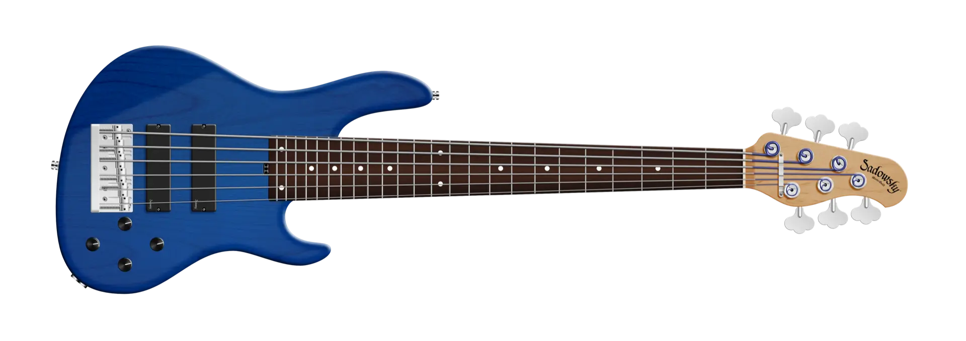 Der Sadowsky MasterBuilt 24-Fret Modern Bass ist perfekt für alle Spieler, die einen modernen Bass mit dem berühmten Sadowsky-Ton suchen: Niemals harsch oder schrill klingend, mit starken, kraftvollen, aber nie matschigen Bässen, mit präsenten, aber nicht zu aggressiven Mitten und einem süßen und luftigen Höhenbereich. Dieser 6-saitige Bass hat einen Korpus aus amerikanischer Roterle (chambered) mit einer Ocean Blue Transparent Satin-Lackierung. Die Korpusform ist schlank und unterdimensioniert mit tieferen Cutaways für bessere Bespielbarkeit und einen vollen Tonumfang von zwei Oktaven. Der Hals ist aus geröstetem amerikanischem Ahorn gefertigt und hat ein Morado (Pau Ferro) Griffbrett. Der Bass ist mit zwei passiven Sadowsky Soapbar-Tonabnehmern ausgestattet, beide in moderner Position, und verfügt über eine aktive Elektronik, die True Bypass, Vintage Tone Control sowie Treble- und Bass-Boost bietet. Die Hardware umfasst Sadowsky Light Open Gear Mechaniken und eine Sadowsky Quick String Release Brücke. Jeder Sadowsky MasterBuilt 24-Fret Modern Bass wird ausschließlich in unserer Werkstatt in Deutschland gefertigt und wiegt nicht mehr als 4,17 kg. Eine gute Wahl für Bassisten, die einen leichten, modern aussehenden Bass mit dem speziellen modernen Sadowsky-Sound suchen.