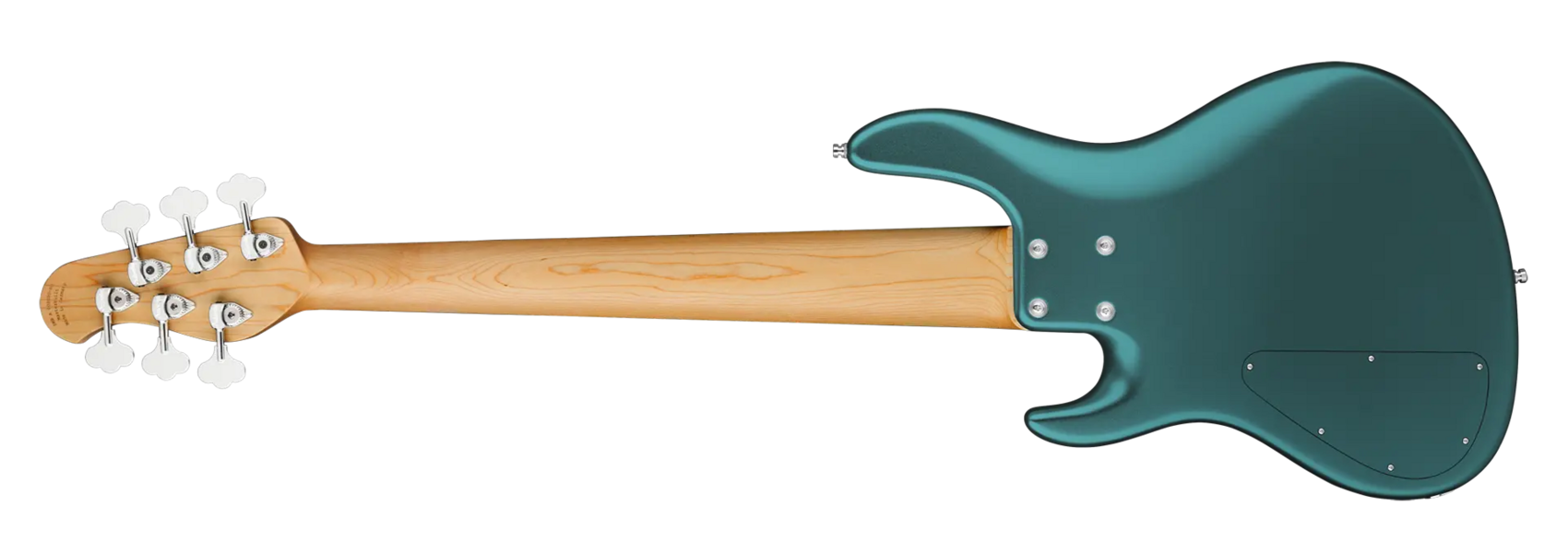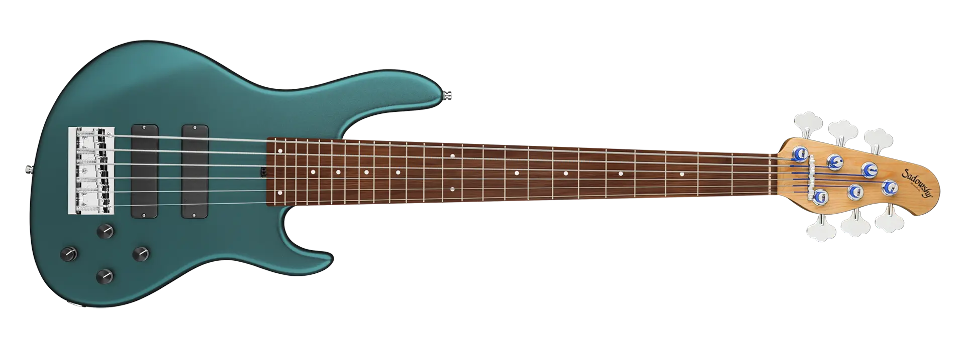 Der Sadowsky MasterBuilt 24-Fret Modern Bass ist perfekt für alle Spieler, die einen modernen Bass mit dem berühmten Sadowsky-Ton suchen: Niemals harsch oder schrill klingend, mit starken, kraftvollen, aber nie matschigen Bässen, mit präsenten, aber nicht zu aggressiven Mitten und einem süßen und luftigen Höhenbereich. Dieser 6-saitige Bass hat einen Korpus aus amerikanischer Roterle (chambered) mit einer Solid Vintage Teal Green Metallic Satin-Lackierung. Die Korpusform ist schlank und unterdimensioniert mit tieferen Cutaways für bessere Bespielbarkeit und einen vollen Tonumfang von zwei Oktaven. Der Hals ist aus geröstetem amerikanischem Ahorn gefertigt und hat ein Morado (Pau Ferro) Griffbrett. Der Bass ist mit zwei passiven Sadowsky Soapbar-Tonabnehmern ausgestattet, beide in moderner Position, und verfügt über eine aktive Elektronik, die True Bypass, Vintage Tone Control sowie Treble- und Bass-Boost bietet. Die Hardware umfasst Sadowsky Light Open Gear Mechaniken und eine Sadowsky Quick String Release Brücke. Jeder Sadowsky MasterBuilt 24-Fret Modern Bass wird ausschließlich in unserer Werkstatt in Deutschland gefertigt und wiegt nicht mehr als 4,17 kg. Eine gute Wahl für Bassisten, die einen leichten, modern aussehenden Bass mit dem speziellen modernen Sadowsky-Sound suchen.
