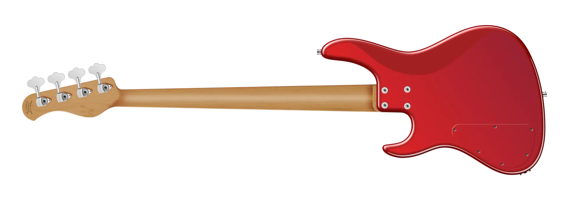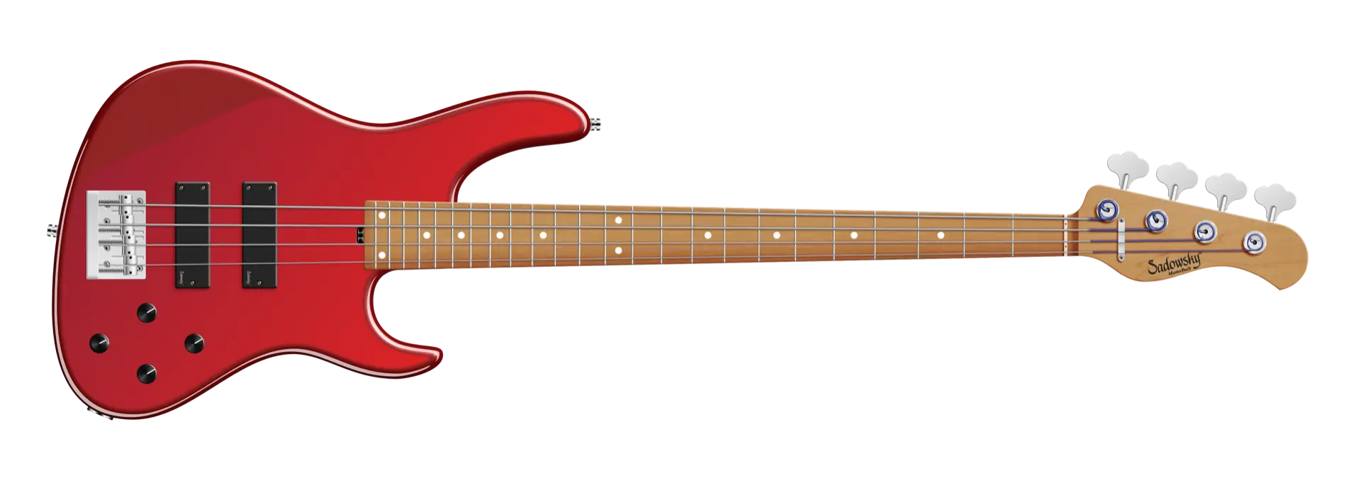 Der Sadowsky MasterBuilt 24-Fret Modern Bass ist perfekt für alle Spieler, die einen modernen Bass mit dem berühmten Sadowsky-Ton suchen: Niemals harsch oder schrill klingend, mit starken, kraftvollen, aber nie matschigen Bässen, mit präsenten, aber nicht zu aggressiven Mitten und einem süßen und luftigen Höhenbereich. Dieser 4-saitige Bass hat einen Korpus aus amerikanischer Sumpfesche (chambered) mit einer Solid Candy Apple Red Metallic High Polish-Lackierung. Die Korpusform ist schlank und unterdimensioniert mit tieferen Cutaways für bessere Bespielbarkeit und einen vollen Tonumfang von zwei Oktaven. Der Hals ist aus geröstetem amerikanischem Ahorn gefertigt und hat ein Griffbrett aus geröstetem amerikanischem Ahorn. Der Bass ist mit zwei passiven Sadowsky Soapbar-Tonabnehmern ausgestattet, beide in moderner Position, und verfügt über eine aktive Elektronik, die True Bypass, Vintage Tone Control sowie Treble- und Bass-Boost bietet. Die Hardware umfasst Sadowsky Light Open Gear Mechaniken und eine Sadowsky Quick String Release Brücke. Jeder Sadowsky MasterBuilt 24-Fret Modern Bass wird ausschließlich in unserer Werkstatt in Deutschland gefertigt und wiegt nicht mehr als 3,8 kg. Eine gute Wahl für Bassisten, die einen leichten, modern aussehenden Bass mit dem speziellen modernen Sadowsky-Sound suchen.