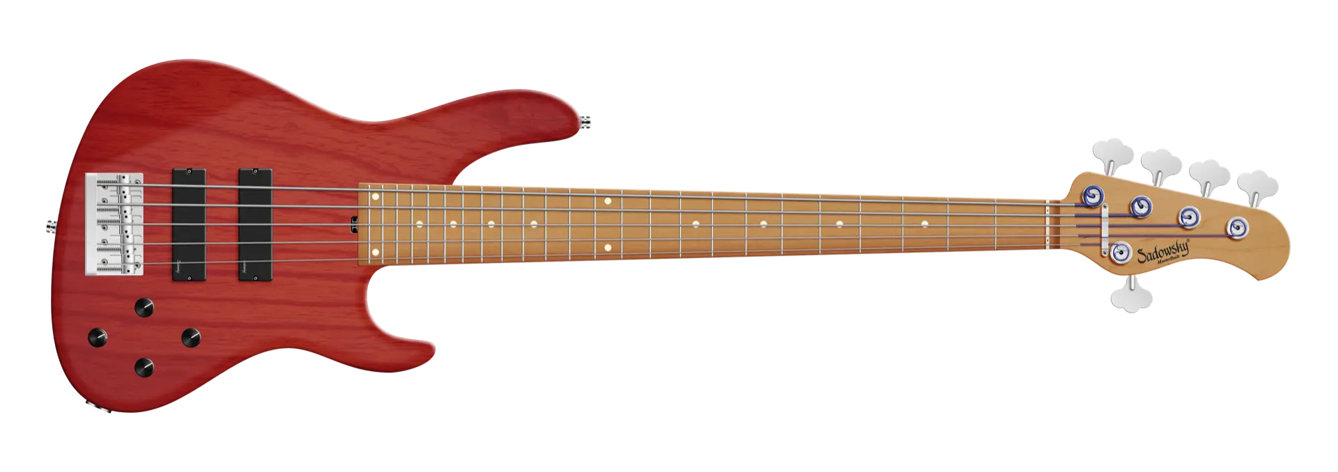 Der Sadowsky MasterBuilt 24-Fret Modern Bass ist perfekt für alle Spieler, die einen modernen Bass mit dem berühmten Sadowsky-Ton suchen: Niemals harsch oder schrill klingend, mit starken, kraftvollen, aber nie matschigen Bässen, mit präsenten, aber nicht zu aggressiven Mitten und einem süßen und luftigen Höhenbereich. Dieser 5-saitige Bass hat einen Korpus aus amerikanischer Sumpfesche (chambered) mit einer Burgundy Red Transparent Satin-Lackierung. Die Korpusform ist schlank und unterdimensioniert mit tieferen Cutaways für bessere Bespielbarkeit und einen vollen Tonumfang von zwei Oktaven. Der Hals ist aus geröstetem amerikanischem Ahorn gefertigt und hat ein Griffbrett aus geröstetem amerikanischem Ahorn. Der Bass ist mit zwei passiven Sadowsky Soapbar-Tonabnehmern ausgestattet, beide in moderner Position, und verfügt über eine aktive Elektronik, die True Bypass, Vintage Tone Control sowie Treble- und Bass-Boost bietet. Die Hardware umfasst Sadowsky Light Open Gear Mechaniken und eine Sadowsky Quick String Release Brücke. Jeder Sadowsky MasterBuilt 24-Fret Modern Bass wird ausschließlich in unserer Werkstatt in Deutschland gefertigt und wiegt nicht mehr als 3,8 kg. Eine gute Wahl für Bassisten, die einen leichten, modern aussehenden Bass mit dem speziellen modernen Sadowsky-Sound suchen.